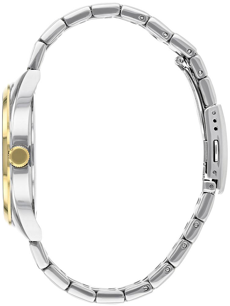 Đặc điểm kỹ thuật - - Vật liệu vỏ / gờ: Mạ ion - Chốt gập 3 chỉ với một lần bấm - Dây đeo bằng thép không gỉ - Mặt kính khoáng - Khả