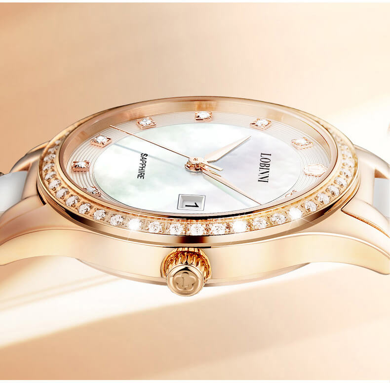 Đồng hồ nữ chính hãng Lobinni Thụy Sỹ Thiết kế hiện đại,sang trọng dành cho phái nữ Thời gian trữ cót lâu lên đến 40h Chống nước 5ATM, Kính sapphire Toàn bộ máy được làm