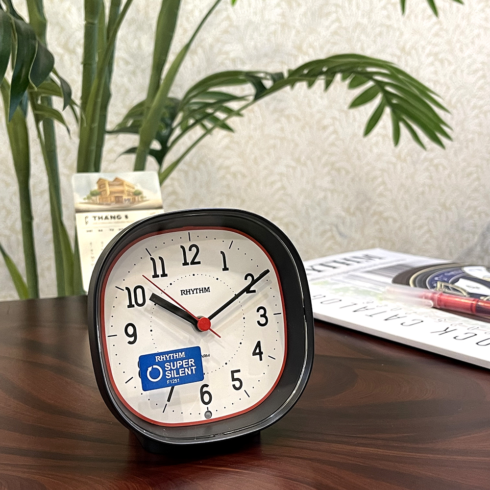Đồng hồ báo thức Rhythm CRF801NR03 – KT:11.3 x 10.2 x 6.6cm. TRọng lượng 220g Vỏ nhựa. Dùng Pin. 2 chức năng Báo thức tiếng bíp và tiếng chuông reng, có chức năng reo lập