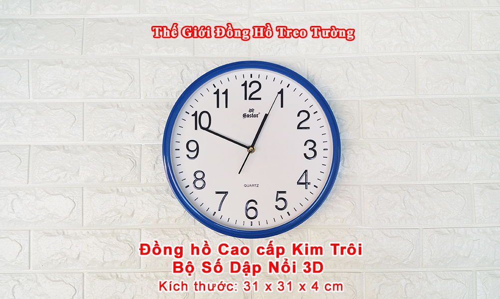 ✨Đồng Hồ Treo Tường Cao Cấp KIM TRÔI EASTAR – Số Nổi 3D – Tặng Pin MAXELL – BH 1 Năm