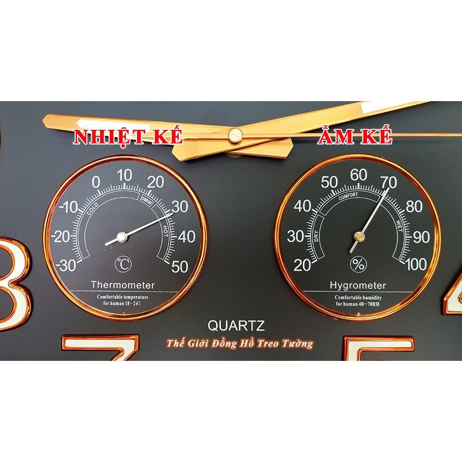 ✨Đồng Hồ Treo Tường DẠ QUANG Tròn Lớn (38cm) - NHIỆT ẨM KẾ Tự Động (Không Dùng Pin) - Máy KIM TRÔI EASTAR - Số Nổi 3D - Viền Siêu Mỏng - Tặng Pin Maxell - BH 1 Năm
