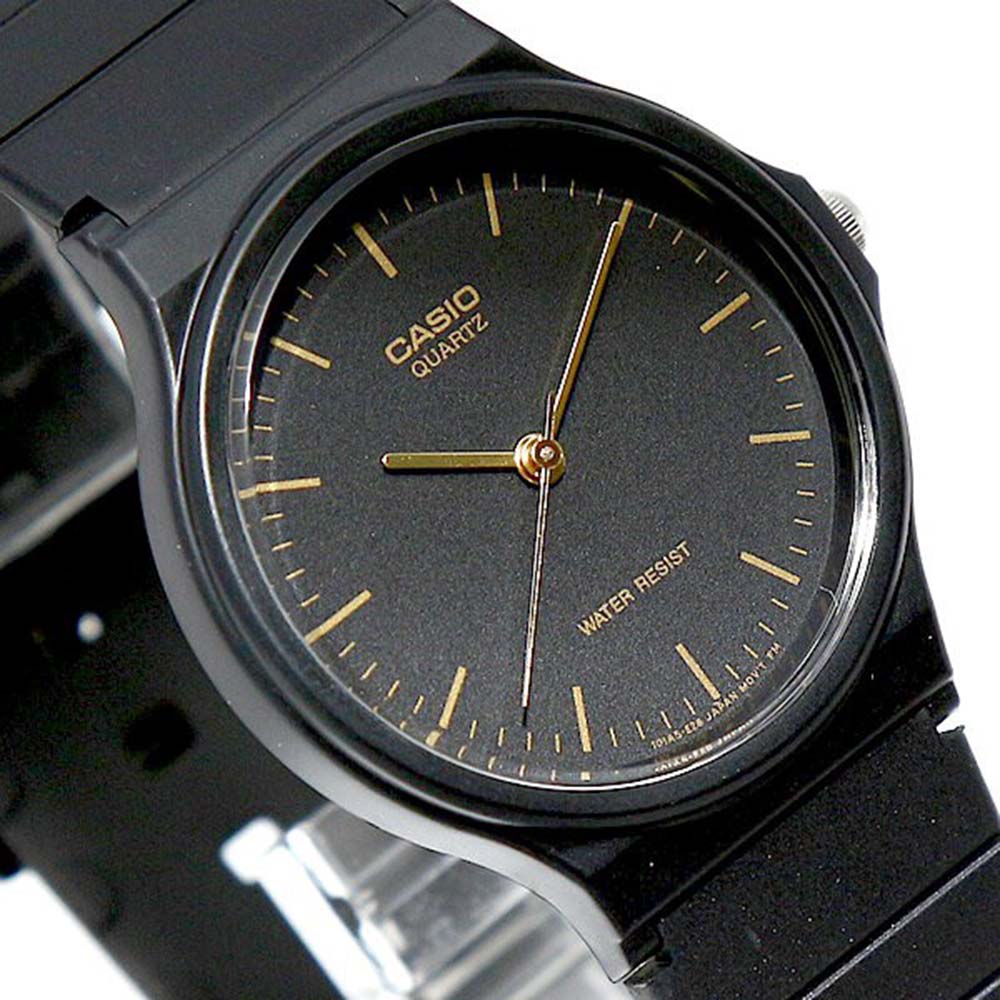 Đồng hồ Casio MQ-24-1ELDF có thiết kế đơn giản và thanh lịch với dây nhựa đen cao cấp mềm đeo rất thoải mái, vạch chỉ giờ mạ vàng trên nền đen tạo vẻ sang trọng