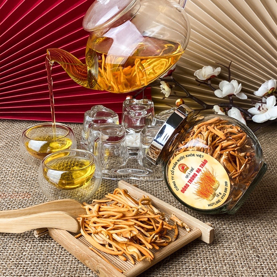 - Uống trà: lấy 10 sợi đông trùng hạ thảo quả thể hãm với nước đun sôi trong ly sau 5-10 phút thì dùng được.