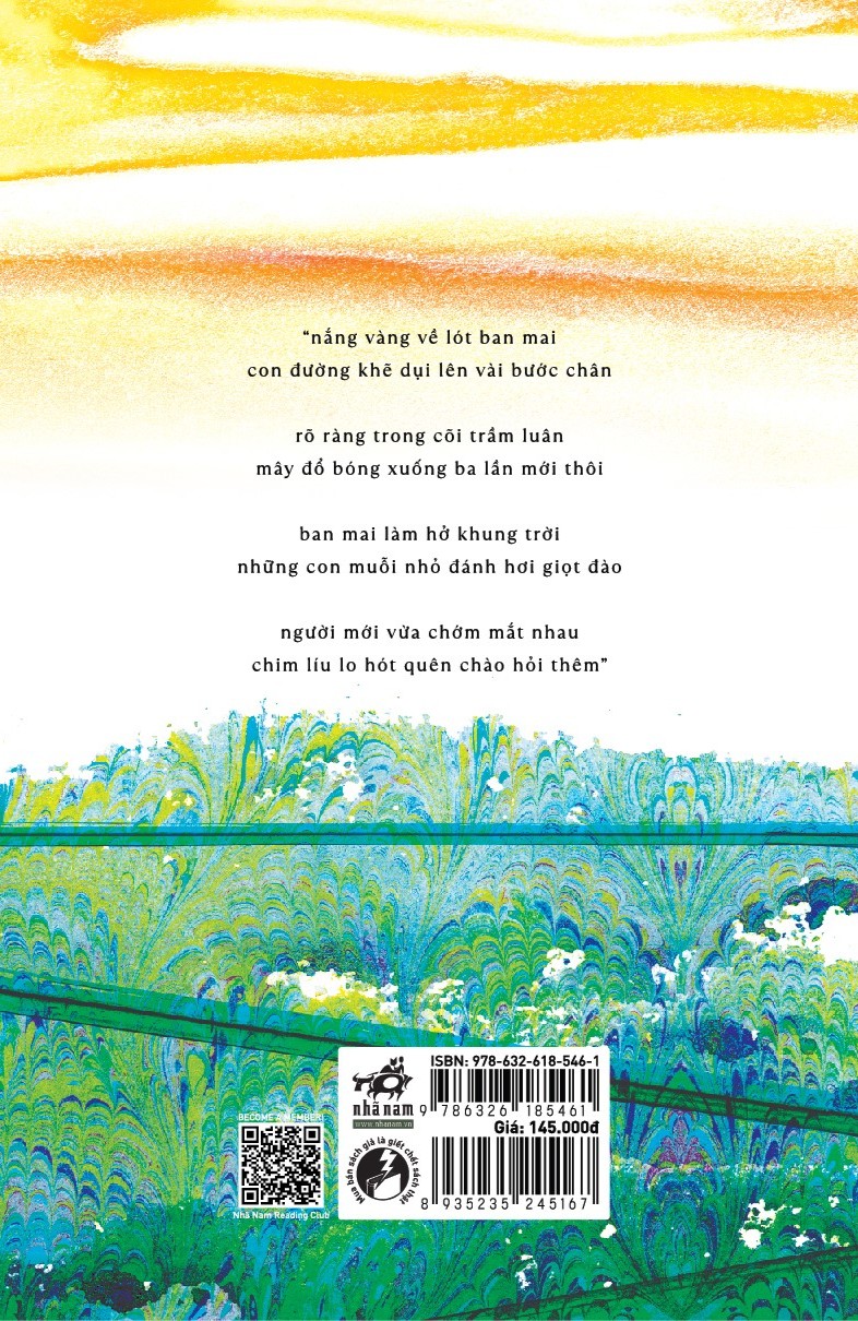 Mua tại Tiktok“nắng vàng về lót ban mai con đường khẽ dụi lên vài bước chân rõ ràng trong cõi trầm luân mây đổ bóng xuống ba lần mới thôi ban mai làm hở khung trời những con muỗi nhỏ đánh hơi giọt đào người mới vừa chớm mắt nhau chim líu lo hót quên chào hỏi thêm"