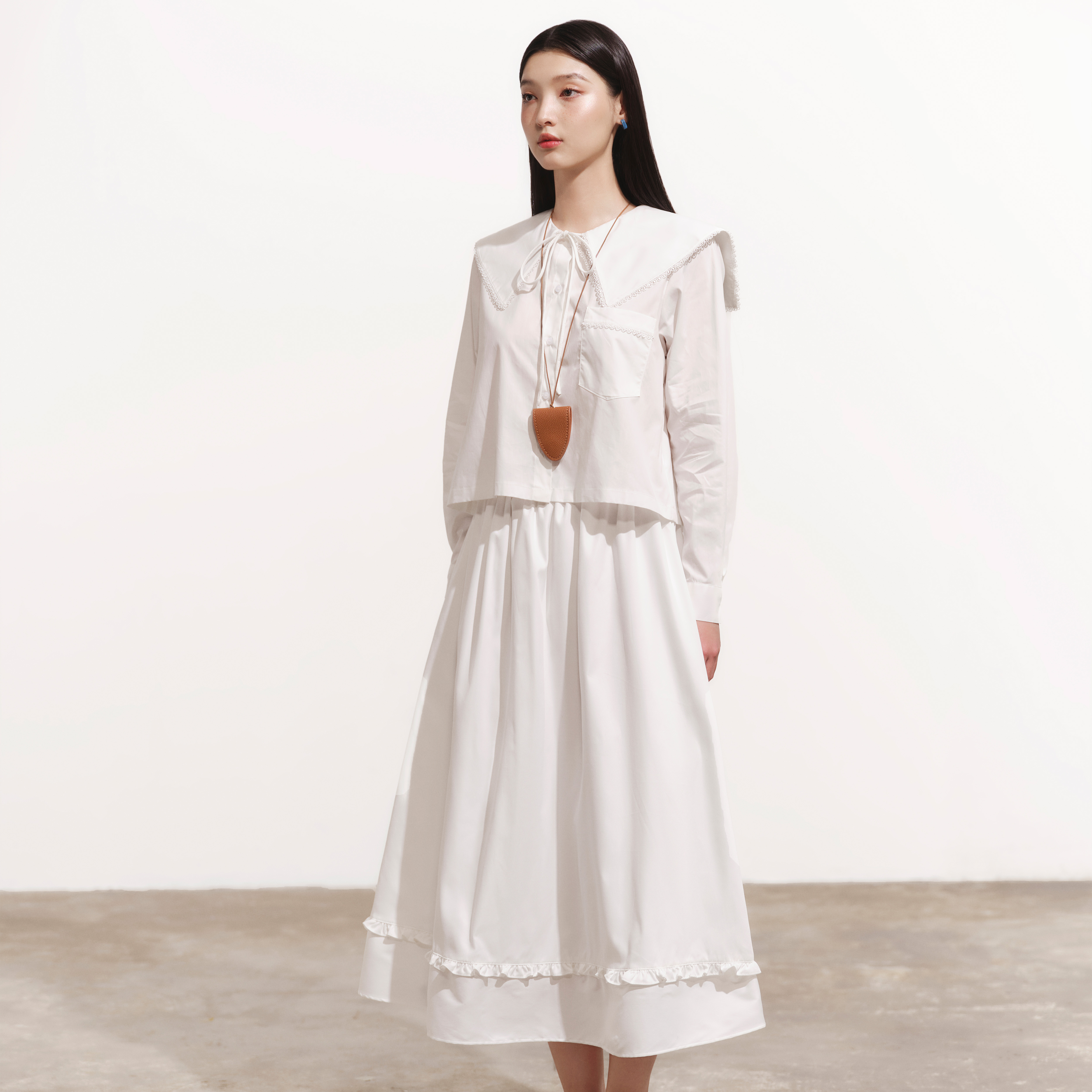 CHI TIẾT SẢN PHẨM - Sản phẩm : Chân váy dài chân chất vải cotton thêu có size dành cho nữ Gabrielle Miều Est.2013 - Chất liệu : Cotton Thêu - Màu sắc : TRẮNG