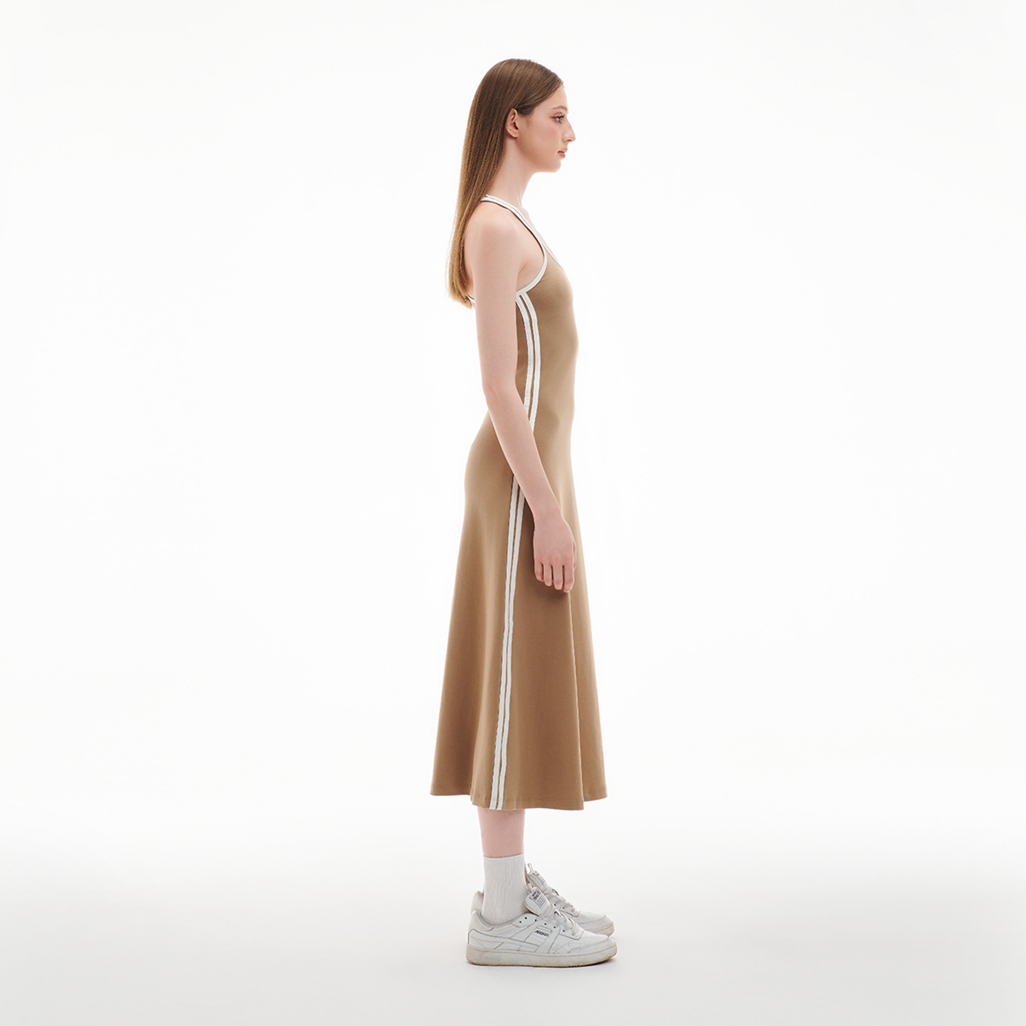 ✨DOTTIE - Đầm midi phối viền - Nâu - D0540