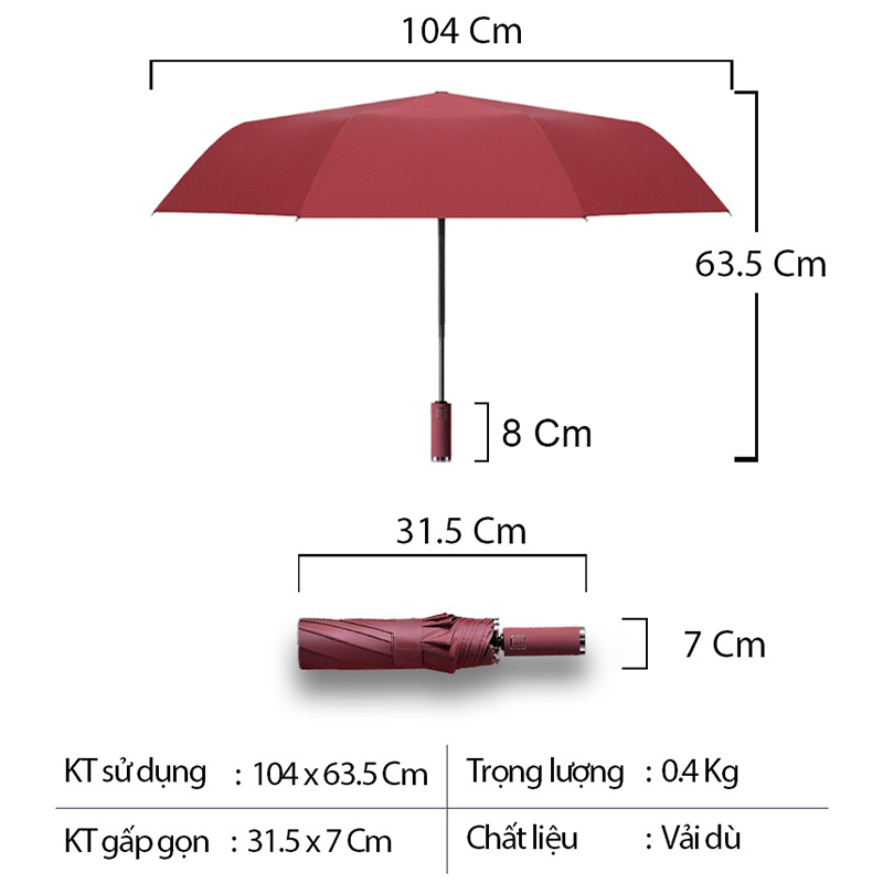 gập 3 tự động được sản xuất tại Việt Nam, sản xuất bằng vật liệu chất lượng cho sản phẩm hoàn hảo, kiểu dáng gọn nhẹ, thời trang và phù hợp với mọi lứa tuổi,