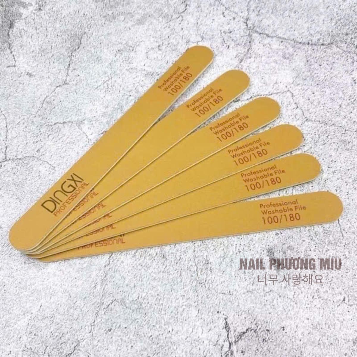 ✨Dũa Mỏng Da Bò DINGXI Lốc 50 Cái Độ Nhám 100/180 Màu Nâu Vàng Làm Nail Tiện Lợi, Form Thẳng, Lõi Nhựa Cứng Cáp, Cầm Chắc Tay, 2 Mặt Nhám Cao Cấp Êm