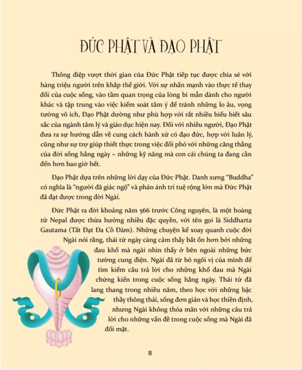 Những câu chuyện nhỏ này khám phá thế giới các nhân vật và bối cảnh để giúp trẻ tiếp cận với chân lý ngàn đời được chuyển tải trong từng câu chuyện. Những câu chuyện tập trung vào việc giải thích tám nguyên tắc quan trọng làm nền tảng của Đạo Phật, thường được biết đến với tên gọi: Bát Chánh đạo.