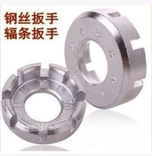 Dụng cụ cân vành, cờ lê tăng và rút nan hoachất liệu: thép carbon cao mạ trắngTrên cờ lê có đánh số các đầu cờ lê to nhỏ khác nhau tương ứng với các loại đầu nan hoa sau khi mua xe mới đi một thời g...