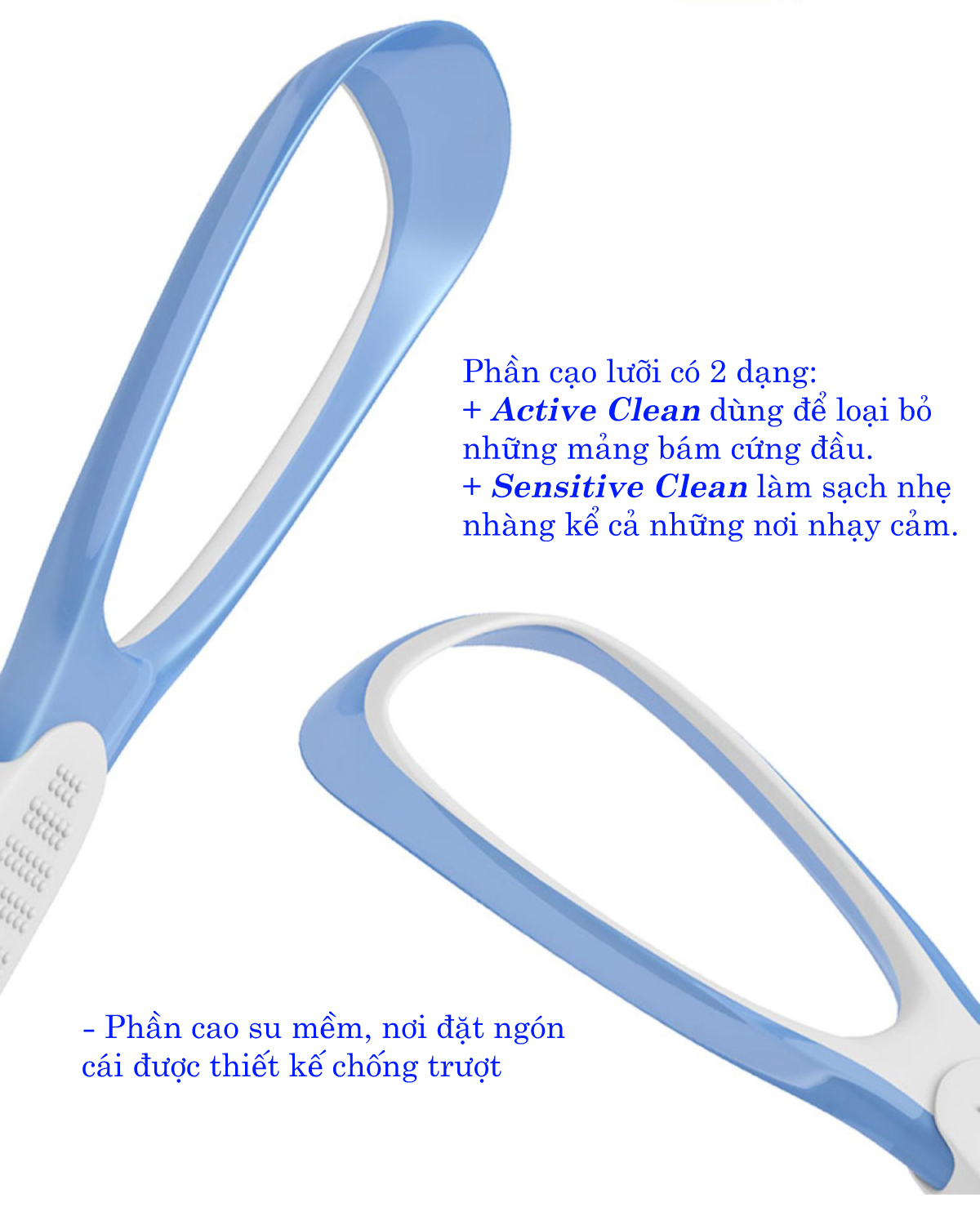 LÀM SẠCH LƯỠI CÙNG TRISA DOUBLE ACTION Cạo Lưỡi Trisa Double Action được thiết kế theo hình dạng tự nhiên của lưỡi Phần cạo lưỡi có 2 dạng: Active Clean dùng để loại bỏ những mảng bám cứng đầu, Sensitive Clean làm sạch nhẹ nhàng kể cả những nơi nhạy cảm. Phần cao su mềm, nơi đặt ngón cái được thiết kế chống trượt Phần tay cầm có hình dáng sang trọng, tiện dụng. dễ sử dụng Chất lượng sản phẩm đã được kiểm nghiệm và được các nha sĩ khuyên dùng Hãy dùng kèm cạo lưỡi vào mỗi lần đánh răng để có được một hàm răng chắc khỏe, trắng sáng và hơi thở luôn thơm mát cả ngày nhé!