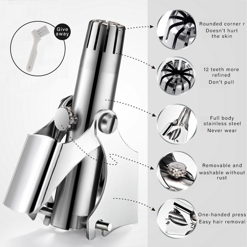 - Lưỡi dao bằng thép không gỉ, không gây dị ứng phù hợp với đường viền của lỗ mũi của bạn để cắt lông an toàn và chính xác, không gây kích ứng da hoặc kéo long.