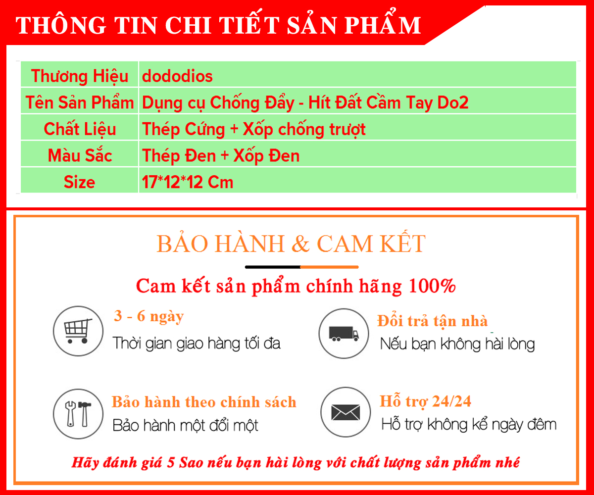 Chi Tiết Sản Phẩm: - Dụng cụ tập hít đất chuyên dụng cho bài tập chống đẩy (hít đất) luyện tập các cơ 1 cách hiệu quả và đúng cách. - Sản phẩm được các