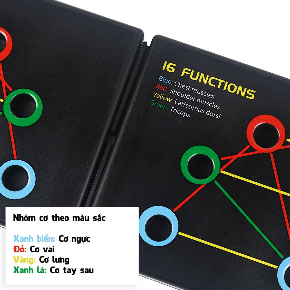 Mua tại Tiktok- Thông tin cơ bản: Dụng cụ hít đất, chống đẩy đa năng 10 in 1 Push Up Sportslink SK0102 Thiết kế đơn giản 10in1 rất tiện dụng Chất liệu: nhựa ABS Cao Cấp chịu lực cực tốt và cực bền. Kích thước sản phẩm: 66cm x 19,5cm Tải trọng tối đa 150 kg Tập luyện các nhóm cơ theo màu sắc : Xanh biển (Cơ ngực) ; Đỏ (Cơ vai) ; Vàng (Cơ lưng) ; Xanh lá (Tay sau). Thiết kế nhỏ gọn, kiểu dáng đơn giản, tiện lợi, có thể tháo lắp dễ dàng An toàn khi sử dụng và có độ bền cao theo thời gian Có thể tháo rời & gấp đôi dễ dàng, tiện lợi khi di chuyển *Giới thiệu chi tiết: chuyên dụng cho bài tập chống đẩy (hít đất) luyện tập các cơ 1 cách hiệu quả và đúng cách Dụng cụ hít đất được các chuyên gia GYM đánh giá cao về tác dụng và hiệu quả Luyện tập các cơ: Cơ ngực, Cơ vai, Cơ lưng, cơ bắp tay với các vị trí được thể hiện trên bảng tập Dễ dàng luyện tập đúng cách hơn, tránh trường hợp phát triển các cơ không đồng đều vì tập đúng 1 tư thế Thiết kế nhỏ gọn, kiểu dáng đơn giản, tiện lợi, có thể tháo lắp dễ dàng. Có chân đế cao su kèm theo sử dụng trong trường hợp nền nhà trơn hoặc tránh xước gạch men Tay cầm có đệm mút êm tay hơn trong quá trình luyện tập. Hình ảnh Dụng cụ hít đất, chống đẩy đa năng 10 in 1 Push Up Sportslink SK0102