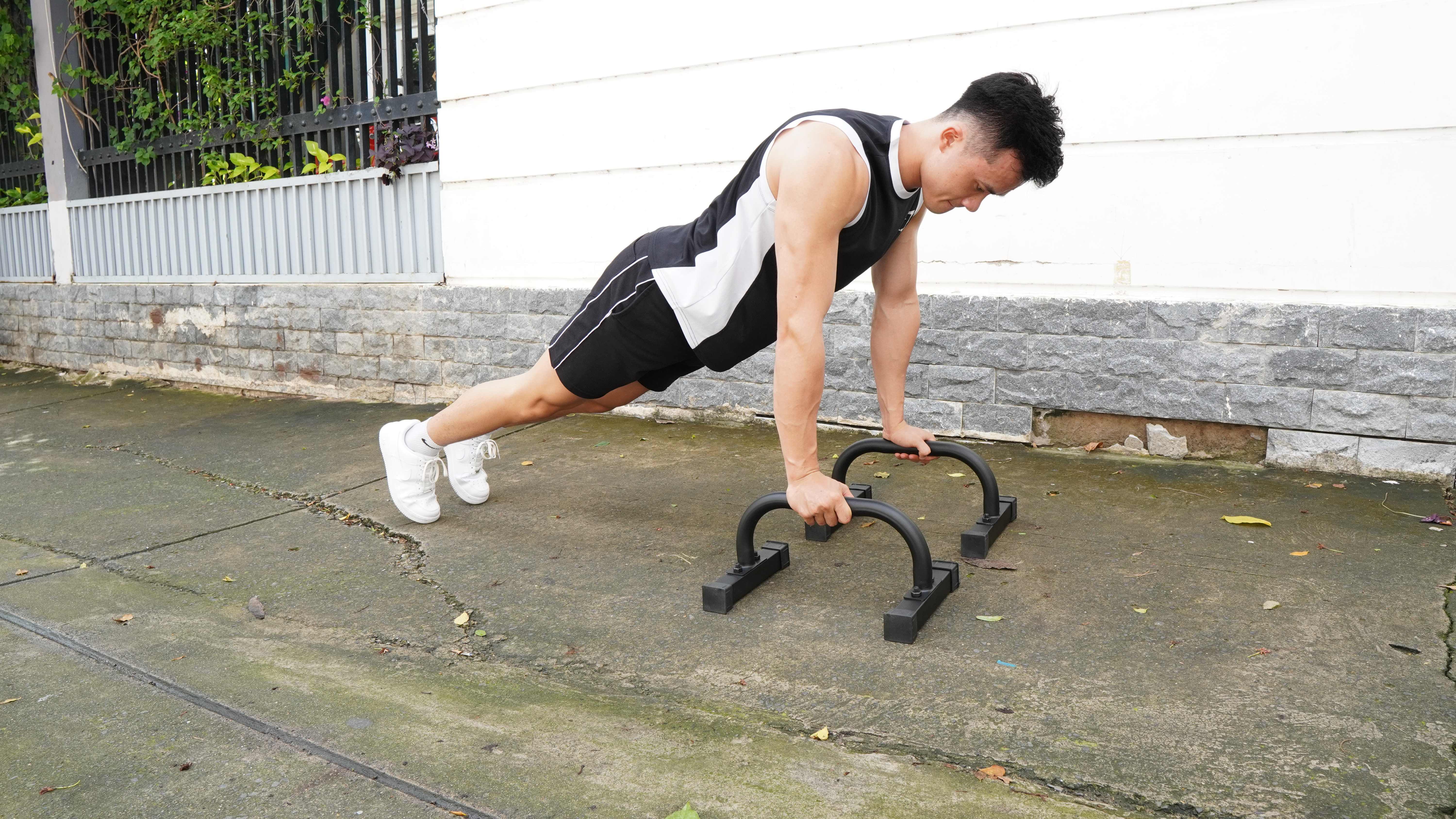 Cặp dụng cụ chống đẩy (tay cầm hít đất) là một dụng cụ hỗ trợ chống đẩy vô cùng hiệu quả. Khi thực hiện, phần thân trên cơ thể được hạ xuống sâu hơn so