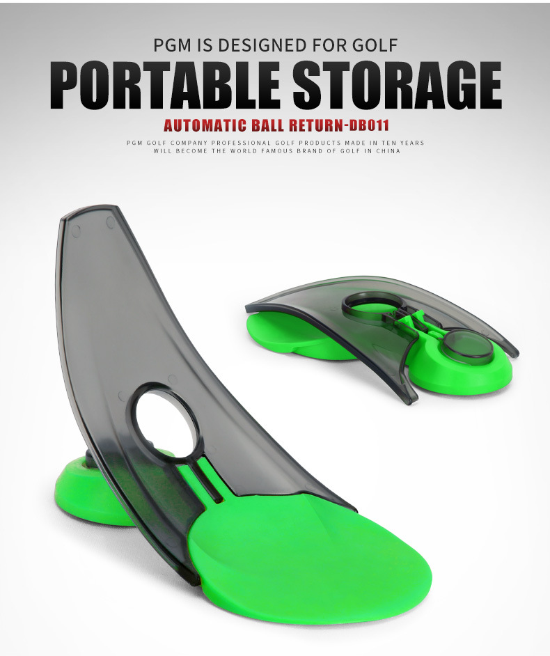 - Dựa theo nguyên lý hoạt động của những chiếc máy bắn bóng tập putt, DB011 với thiết kế đường cong tiêu chuẩn giúp bóng tự động quay về sau khi putt, giúp golfer tập luyện tiện lợi hơn.