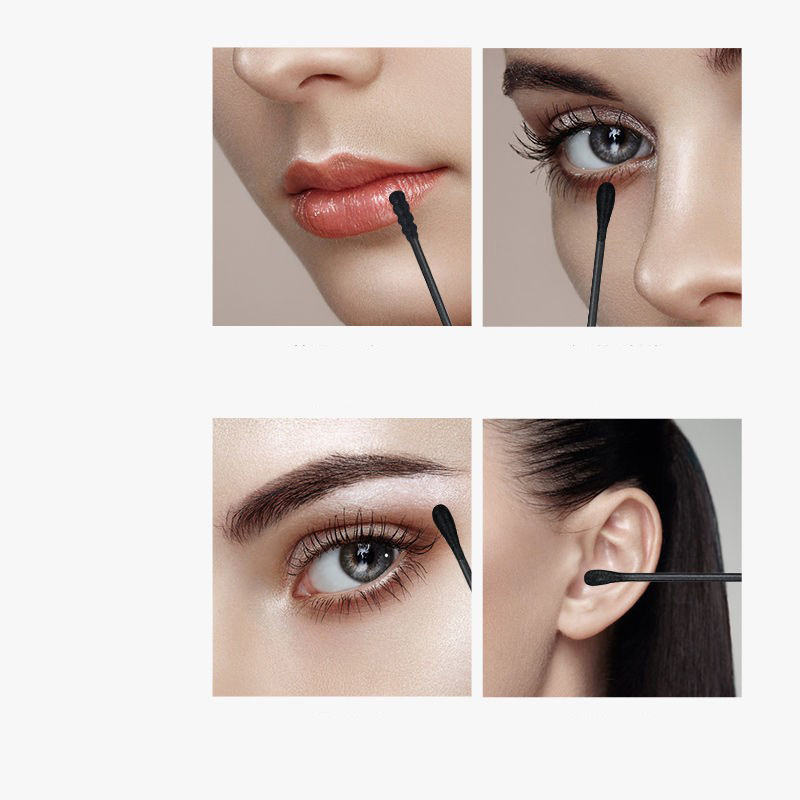 Hộp Bông Trang Điểm 2 Đầu Màu Đen Hồng 200c Tăm Bông Trẻ Em Bông Ngoáy Tai Lấy Ráy Tai Cho Người Lớn