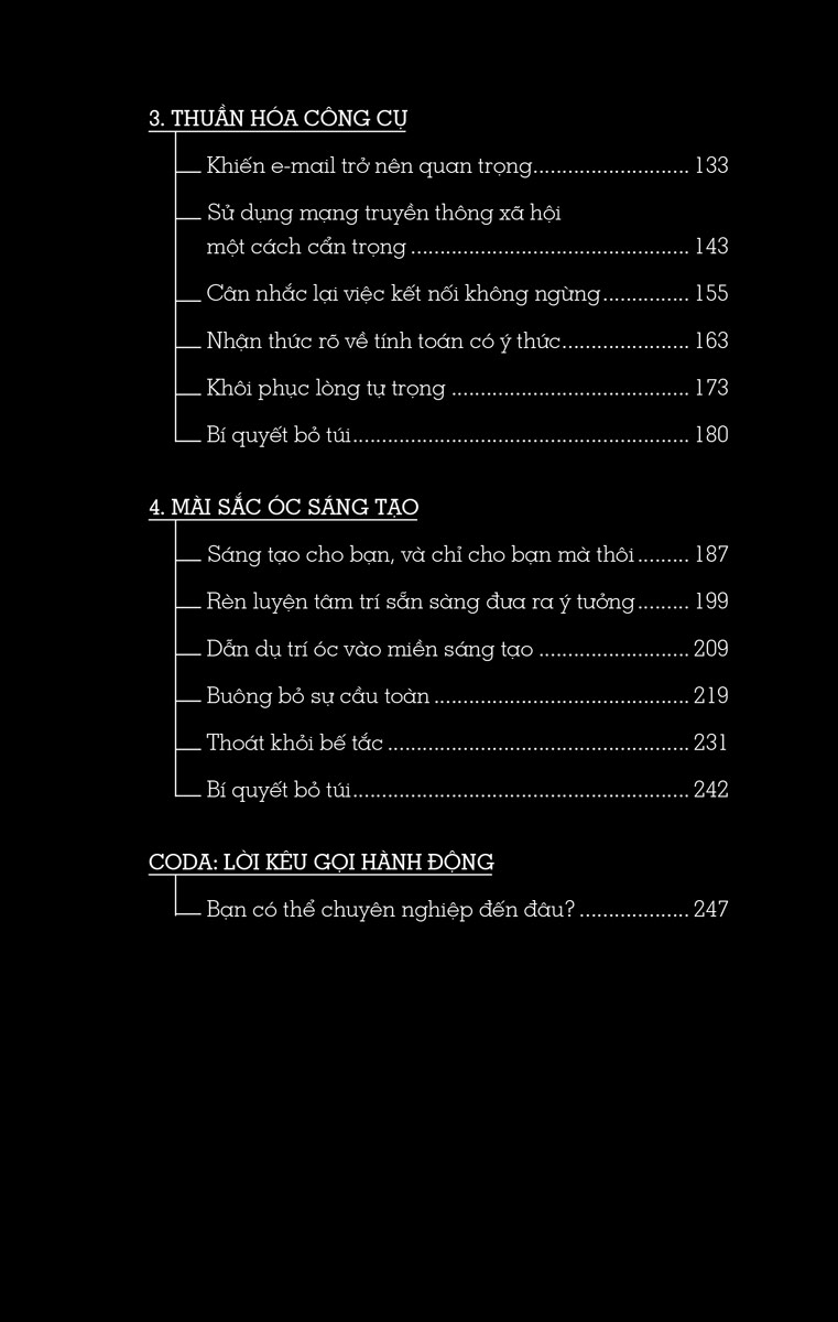 Bạn sẽ thấy rằng thói quen làm việc của mình đã bị phó mặc thích nghi với môi trường xung quanh, hơn là đáp ứng sở thích của chính bạn. Hãy sử dụng cuốn thú vị này như một cơ hội để đánh giá mọi thứ. Hãy dừng lại giữa dòng công việc không ngừng nghỉ để đánh giá cách bạn thực hiện nó. Chỉ bằng cách có trách nhiệm về thói quen hằng ngày của mình bạn mới có thể thực sự tác động tới những gì quan trọng nhất đối với mình.