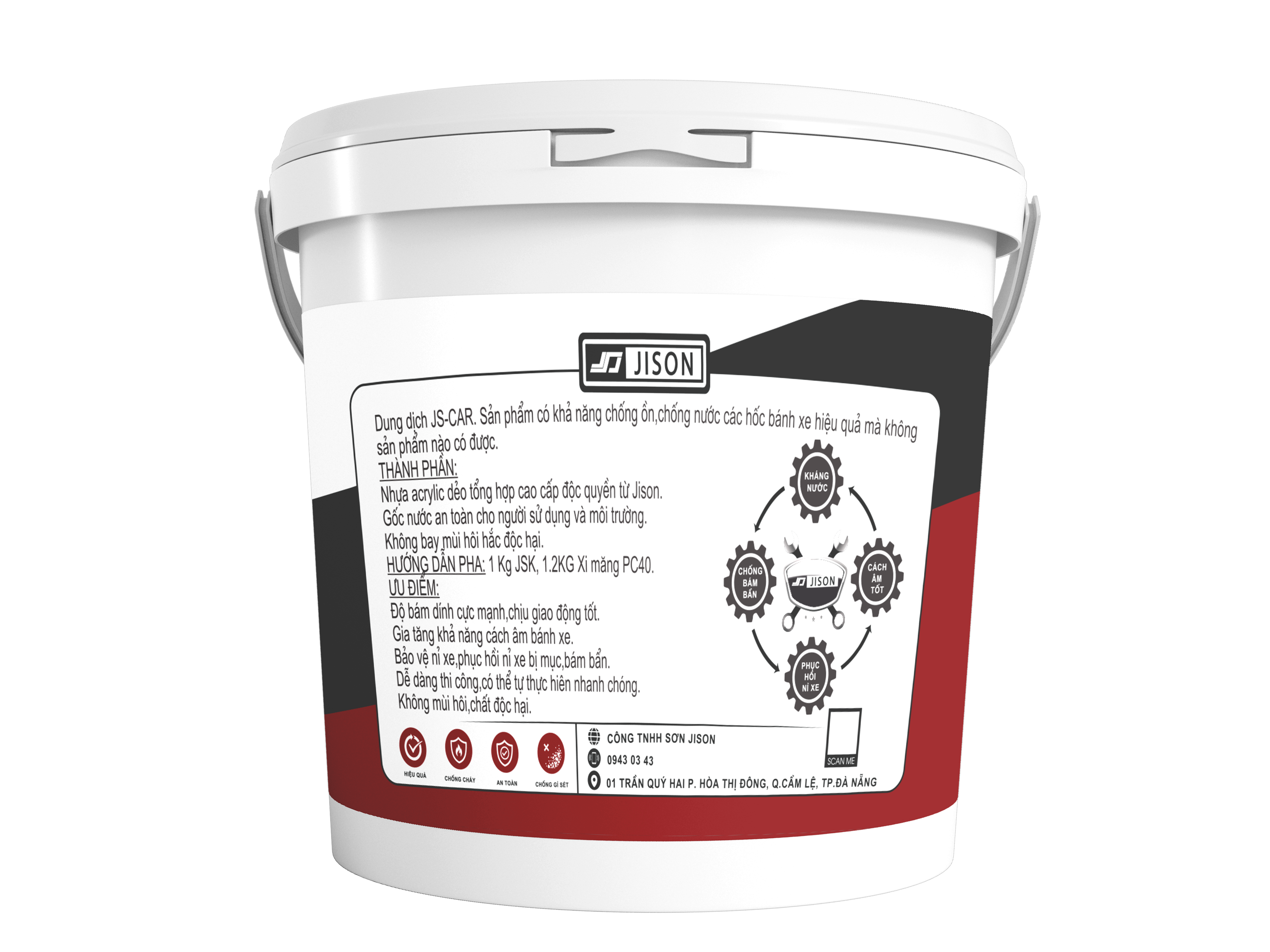 Dung dịch JS-CAR là sản phẩm có khả năng chống ồn, chống nước các hốc bánh xe hiệu quả mà không sản phẩm nào có được. THÀNH PHẦN - Nhựa acrylic dẻo tổng hợp cao