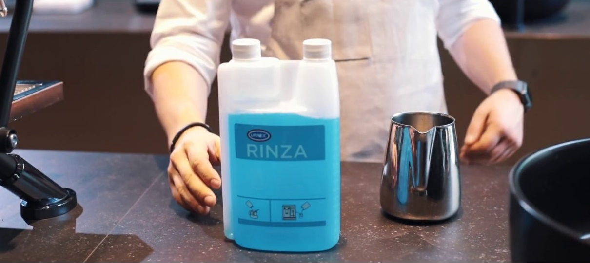 Giới thiệu Dung dịch vệ sinh vòi đánh sữa Urnex Rinza Liquid, giải pháp hiệu quả để phá vỡ và làm sạch váng sữa và chất béo tích tụ trên vòi đánh sữa, ca đánh