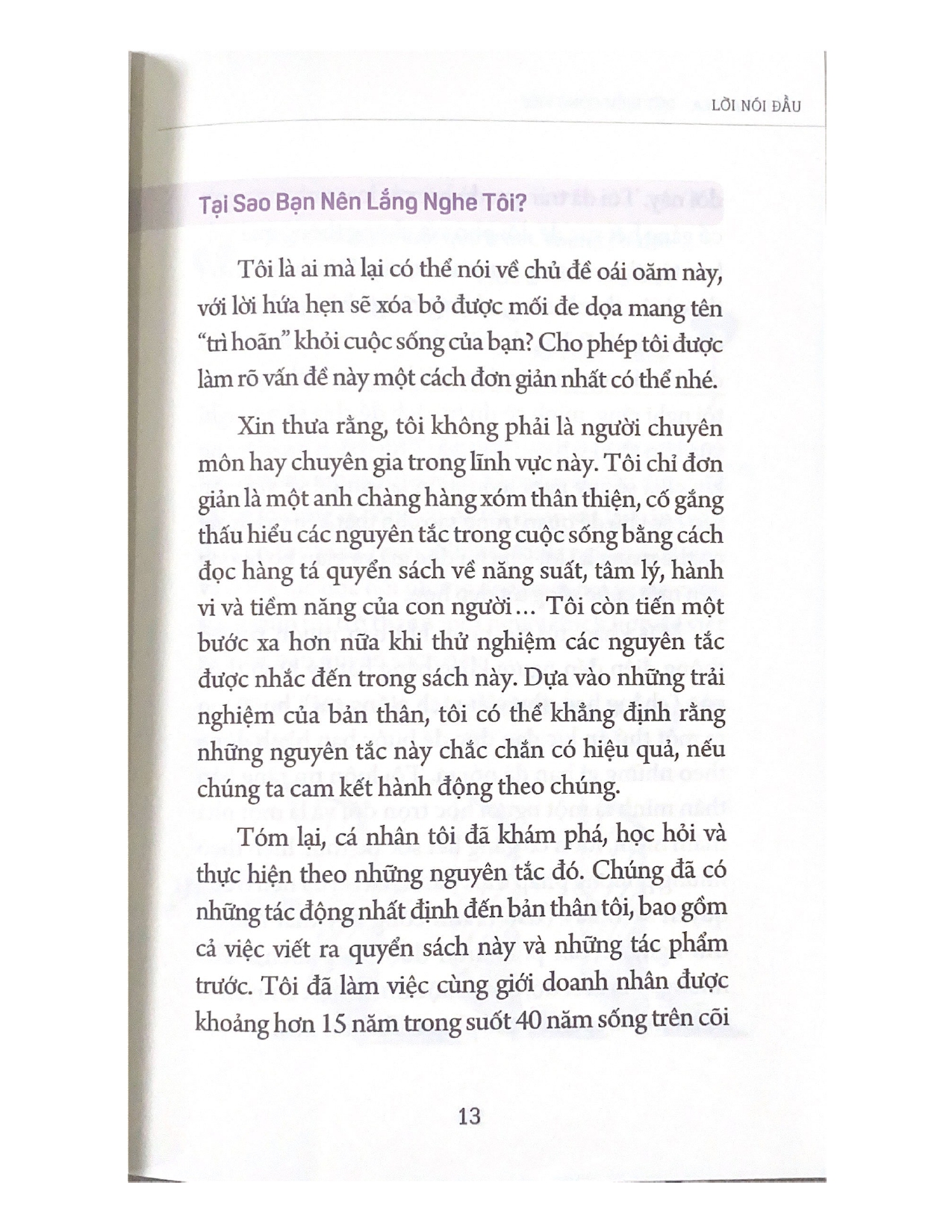 Hy vọng, bạn đọc sẽ tìm được chiến lược đối phó với một trong những con quái vật dữ tợn nhất của thế giới hiện đại, sự Trì Hoãn.