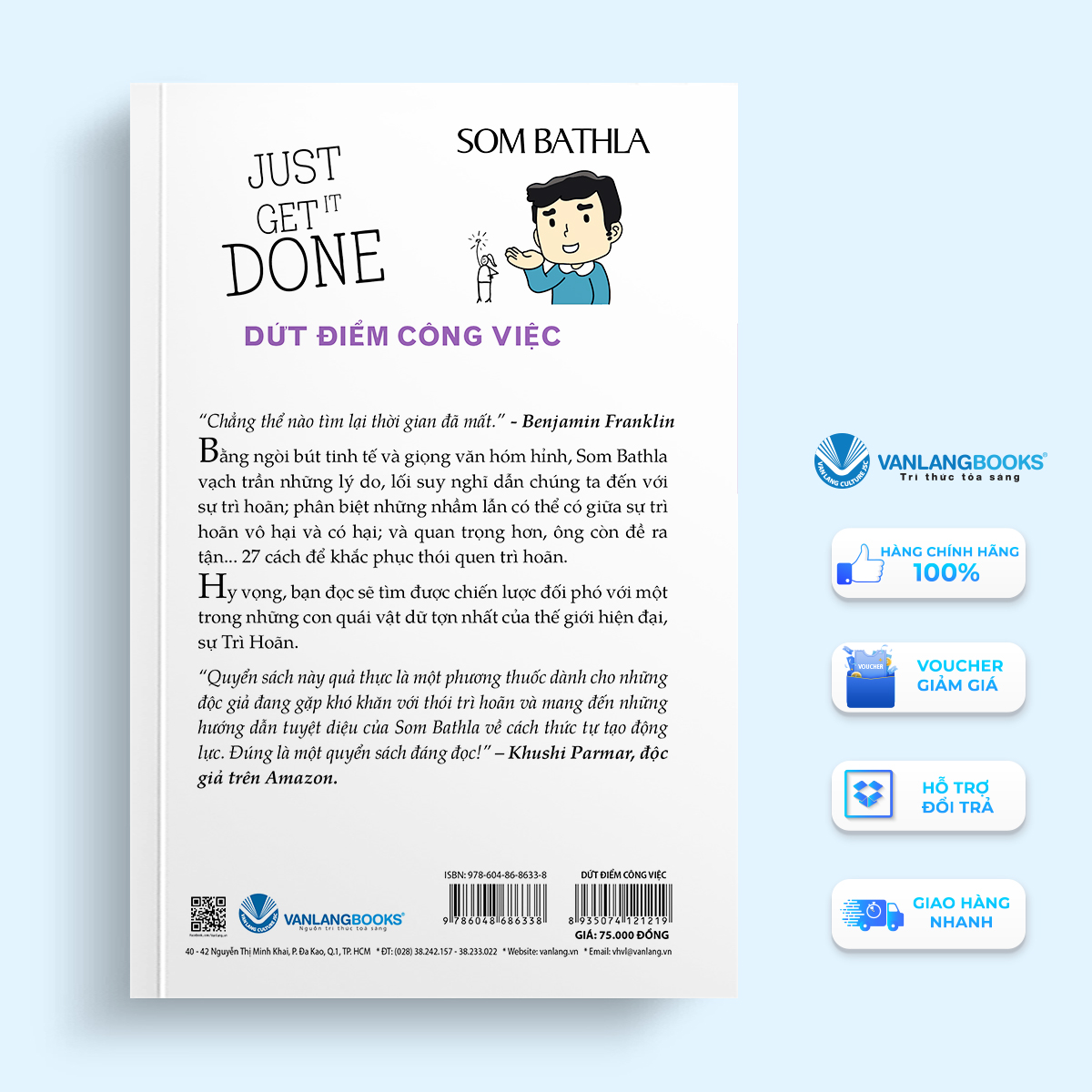 “Quyển sách này quả thực là một phương thuốc dành cho những độc giả đang gặp khó khăn với thói trì hoãn và mang đến những hướng dẫn tuyệt diệu của Som Bathla về cách thức tự tạo động lực. Đúng là một quyển sách đáng đọc!” – Khushi Parmar, độc giả trên Amazon.