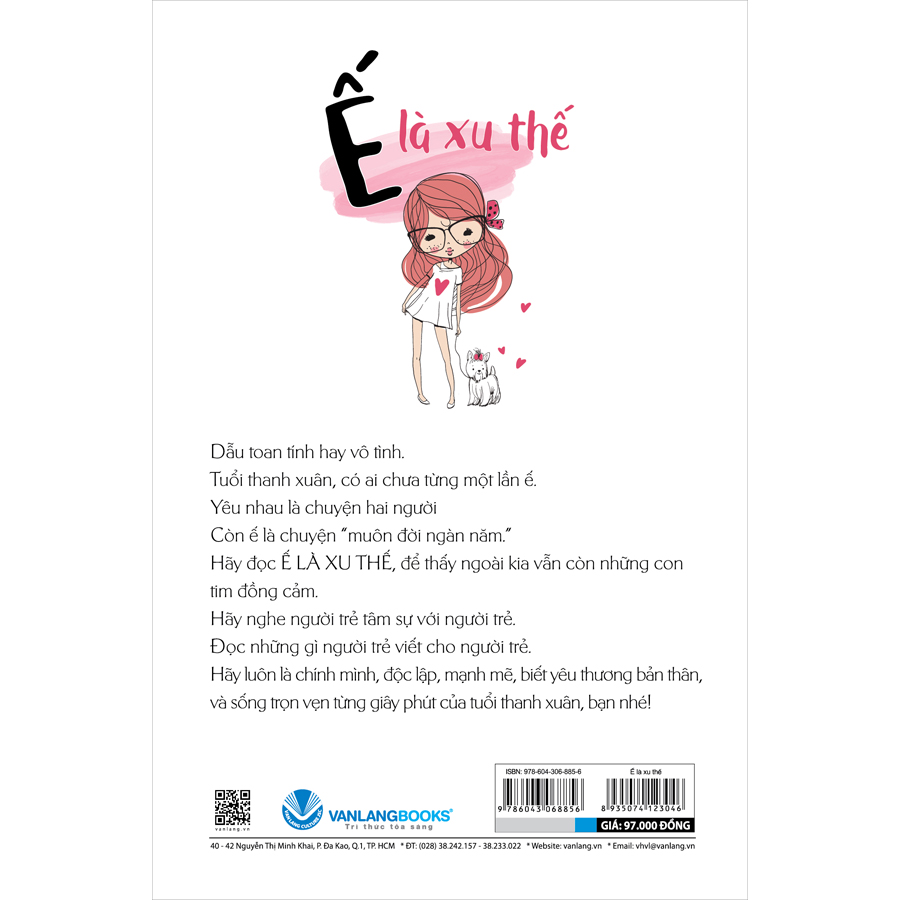 Mua tại TiktokDẫu toan tính hay vô tình. Tuổi thanh xuân, có ai chưa từng một lần ế. Yêu nhau là chuyện hai người Còn ế là chuyện “muôn đời ngàn năm.” Hãy đọc Ế LÀ XU THẾ, để thấy ngoài kia vẫn còn những con tim đồng cảm. Hãy nghe người trẻ tâm sự với người trẻ. Đọc những gì người trẻ viết cho người trẻ. Hãy luôn là chính mình, độc lập, mạnh mẽ, biết yêu thương bản thân, và sống trọn vẹn từng giây phút của tuổi thanh xuân, bạn nhé!
