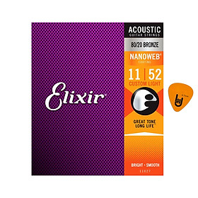 ✨Elixir 11027 - Dây Đàn Acoustic Guitar Cỡ 11 (.011-.052) - 80/20 Bronze Strings Custom Light - Phân Phối Chính Hãng (Bộ Dây phủ lớp Nanoweb cao cấp) - Kèm Móng Gảy DreamMaker