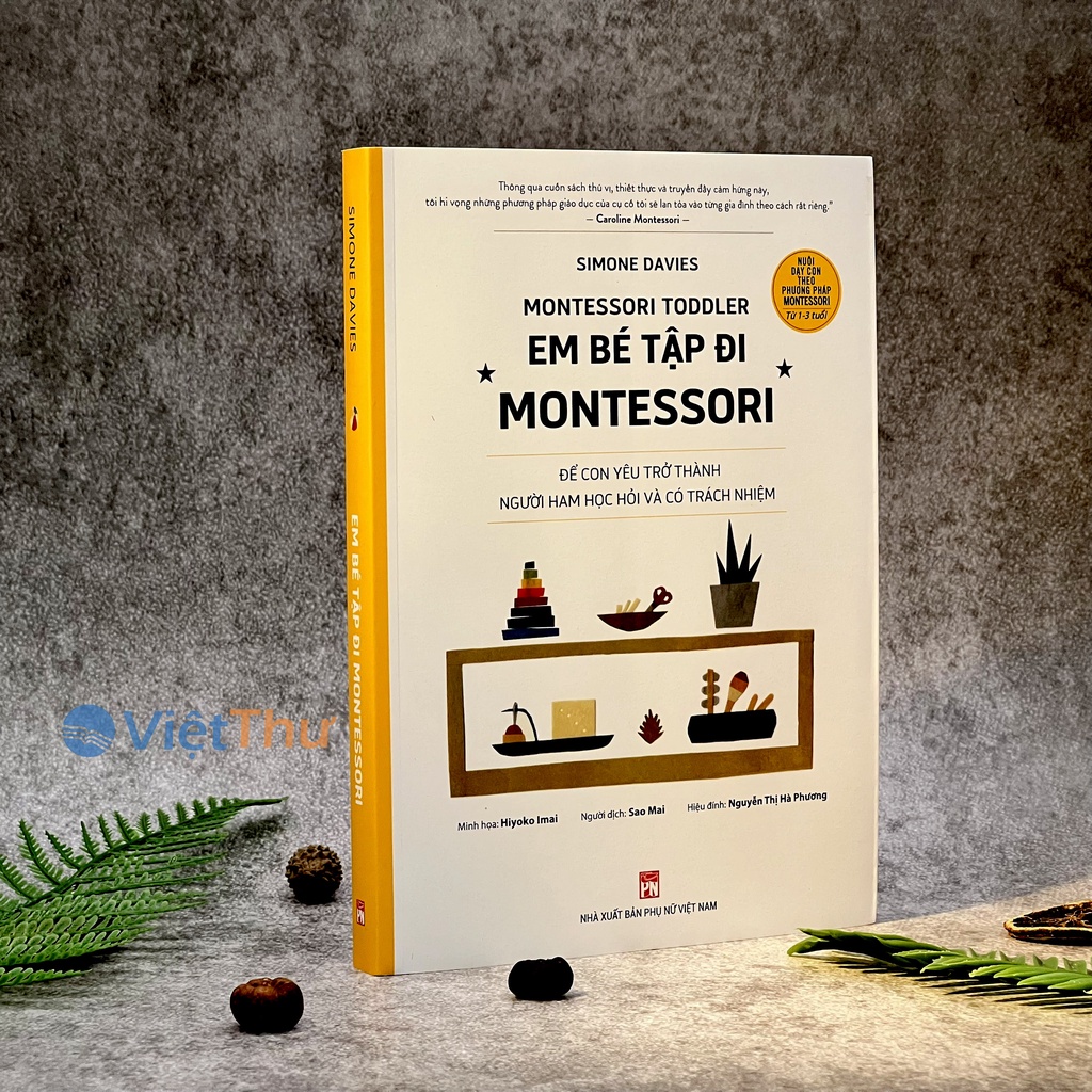 Em Bé Tập Đi Montessori “Thông qua cuốn sách thú vị, thiết thực và truyền đầy cảm hứng này, tôi hi vọng những phương pháp giáo dục của cụ cố tôi sẽ lan toả vào từng gia đình theo cách rất riêng.” – Caroline Montessori, một người cháu của bà Maria Montessori đã gửi gắm lòng tin vào tác phẩm Em bé tập đi Montessori (The Montessori Toddler) như vậy.  Giữa vô vàn ấn phẩm Montessori, Em bé tập đi Montessori (The Montessori Toddler)vẫn nổi bật nhờ những hình ảnh minh họa thực tế, hữu ích và hết sức đáng yêu. Hàng trăm nguyên lý, gợi ý thiết thực được trình bày rất khoa học trên mọi phương diện: các dạng hoạt động Montessori, phương pháp bài trí không gian trong nhà theo phong cách Montessori, những kĩ năng hữu ích mà trẻ mới biết đi cần học giúp ta “chung sống” cùng những em bé lẫm chầm; thật tuyệt vời khi chúng xoay quanh 5 “nguyên tắc” dễ nhớ vô cùng hiệu quả:  Giữ bình tĩnh khi lũ trẻ trở nên cáu kỉnh, đặt ra giới hạn bằng tình yêu thương và thái độ tôn trọng bé  Bài trí tổ ấm và loại bỏ các đồ đạc lỉnh kỉnh  Tạo ra những hoạt động Montessori phù hợp với lứa tuổi từ 1-3  Nuôi nấng một em bé ham học hỏi, mê thích khám phá thế giới xung quanh  Quan sát thế giới qua đôi mắt của trẻ mới biết đi.  Em bé tập đi Montessori (The Montessori Toddler)được các phụ huynh ở rất nhiều quốc gia trên thế giới đón nhận nồng nhiệt nhờ những “câu chuyện thực tế” truyền cảm hứng, với bảng Phụ lục và phần Index tỉ mỉ, dễ tra cứu – hướng đến mục tiêu biến từng ngôi nhà bình thường thành mái nhà Montessori, đồng thời thay đổi cách người lớn chúng ta đang nhìn nhận trẻ mới biết đi, nuôi nấng các bé thành người ham học và có trách nhiệm.