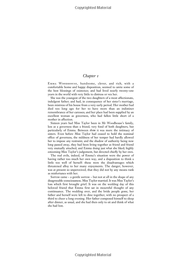This is the "Penguin English Library Edition" of "Emma" by Jane Austen. 'I never have been in love; it is not my way, or my nature; and I do not think I ever shall'. Beautiful, clever, rich - and single - Emma Woodhouse is perfectly content with her life and sees no need for either love or marriage. Nothing, however, delights her more than interfering in the romantic lives of others. But when she ignores the warnings of her good friend Mr Knightley and attempts to arrange a suitable match for her protegee Harriet Smith, her carefully laid plans soon unravel and have consequences that she never expected. With its imperfect but charming heroine and its witty and subtle exploration of relationships, Emma is often seen as Jane Austen's most flawless work. "The Penguin English Library" contains 100 paperbacks of the best fiction written in English, from the eighteenth century and the very first novels to the beginning of the First World War .