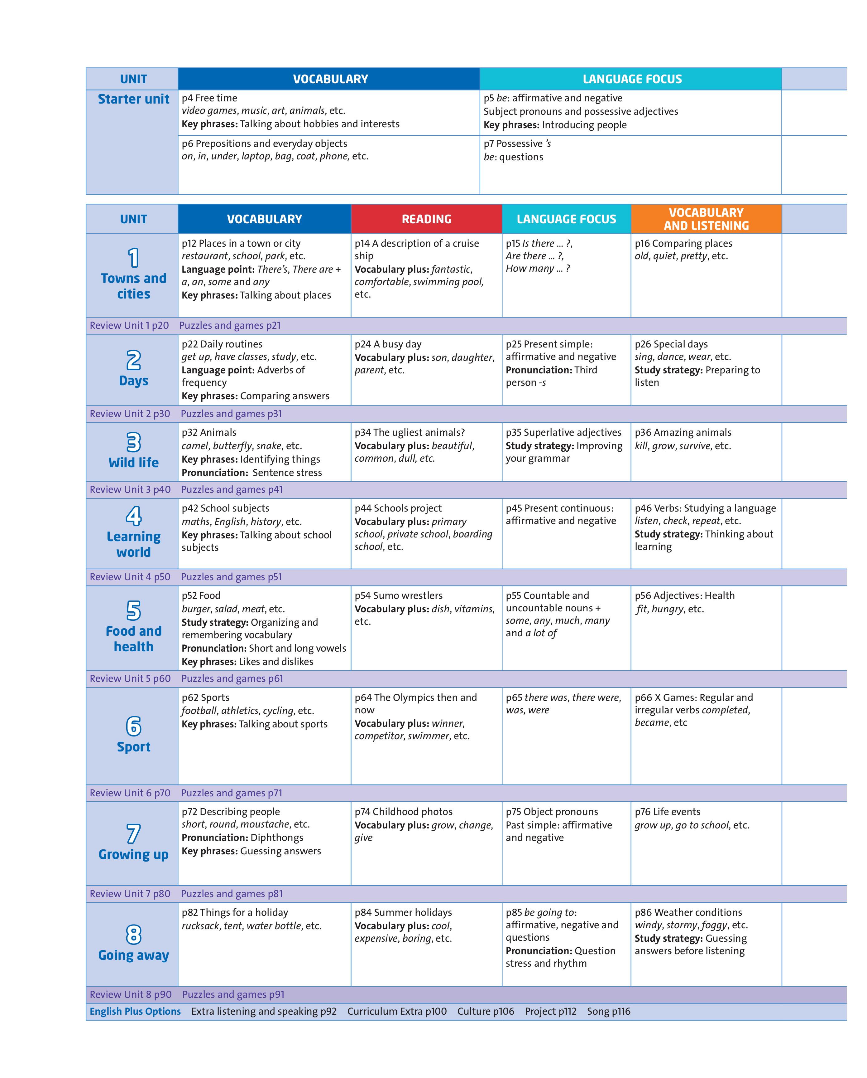 English Plus: Level 1: Student's Book 1 The English Plus Student's Book provides plenty of carefully planned practice to build students' confidence whatever their ability. Extra material offers flexible options so that you can cater to different learning needs and tailor lessons to your class.