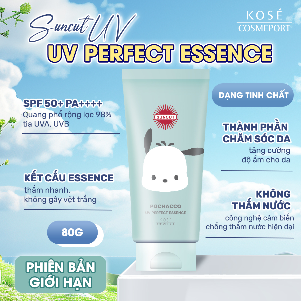 ESSENCE CHỐNG NẮNG - SIÊU CHỐNG THẤM NƯỚC 80G PHIÊN BẢN GIỚI HẠN – POCHACCO SUNCUT UV PERFECT ESSENCE SUPER WATER PROOF SPF50+ PA++++ Số Lô: In trên sản phẩm Khối Lượng Tịnh: