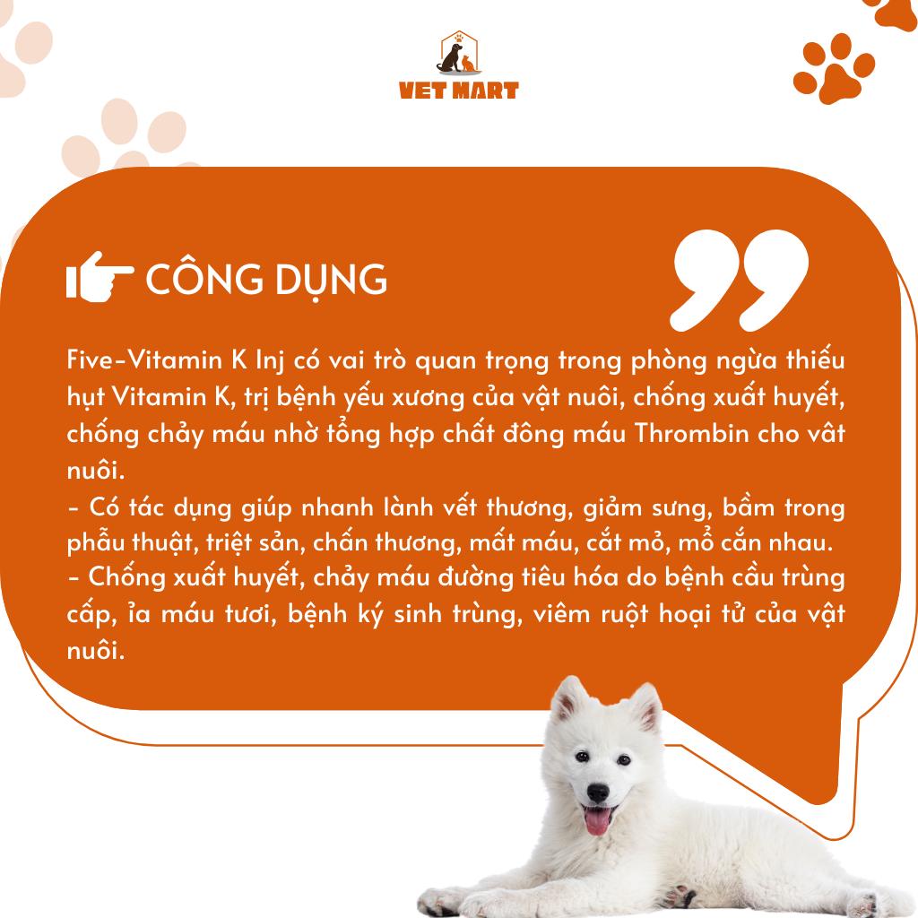 ✨Five-Vitamin K Inj (100ml)-Dung dịch cầm máu, giảm bầm dập cho thú cưng, gia cầm, thủy cầm, gia súc_Fivevet