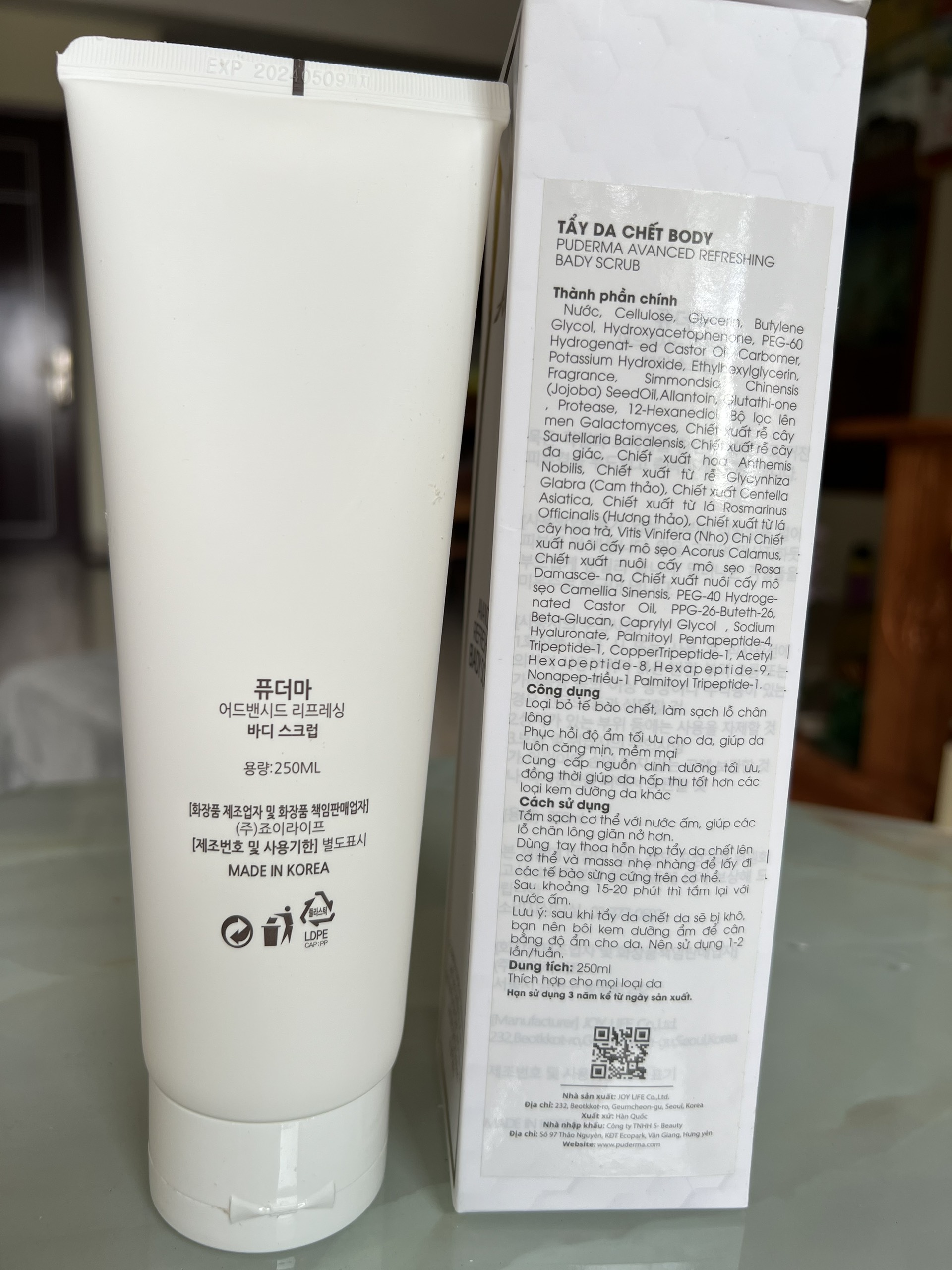 - Lấy 1 lượng vừa đủ Tẩy da chết toàn thân Puderma Advanced Refreshing Bady Scrub tản đều toàn thân. Vỗ nhẹ cho kem thẩm thấu, sau đó massage da khoảng 1 ~2 phút. Sau đó tắm lại với nước sạch. Thành phần chính của Tẩy Da Chết Toàn Thân Body PUDERMA ADVANCED REFRESHING BADY SCRUB (dùng cho toàn thân): Water, Niacinamide, PEG-8, Glycerin, Cellulose, Oryza Sativa (Rice) Bran Water, Carbomer, Arginine, PEG-40 Hydrogenated Castor Oil, Chlorphenesin, Butylene Glycol, Microcrystalline Cellulose, Glycyrhiza Glabra (Licorice) Root Extract, Zingiber Officinale (Ginger) Root Extract, Schisandra Chinensis Fruit Extract, Coptis Japonica Root Extract, Camellia Sinensis Leaf Extract, Allantoin, 1,2-Hexanediol, Avena Sativa (Oat) Meal Extract, Oryza Sativa (Rice) Extract, Sesamum Indicum (Sesame) Seed Extract, Vigna Radiata Seed Extract, Propolis Wax, Caprylyl Glycol, Simmondsia Chinensis (Jojoba) Seed Oil Prunus Amygdalus Dulcis (Sweet Almond) Oil, Macadamia Ternifolia Seed Oil, Oryza Sativa (Rice) Bran Extract, Asiaticoside, Sodium Hyaluronate, Disodium EDTA, Fragrance Cam kết: