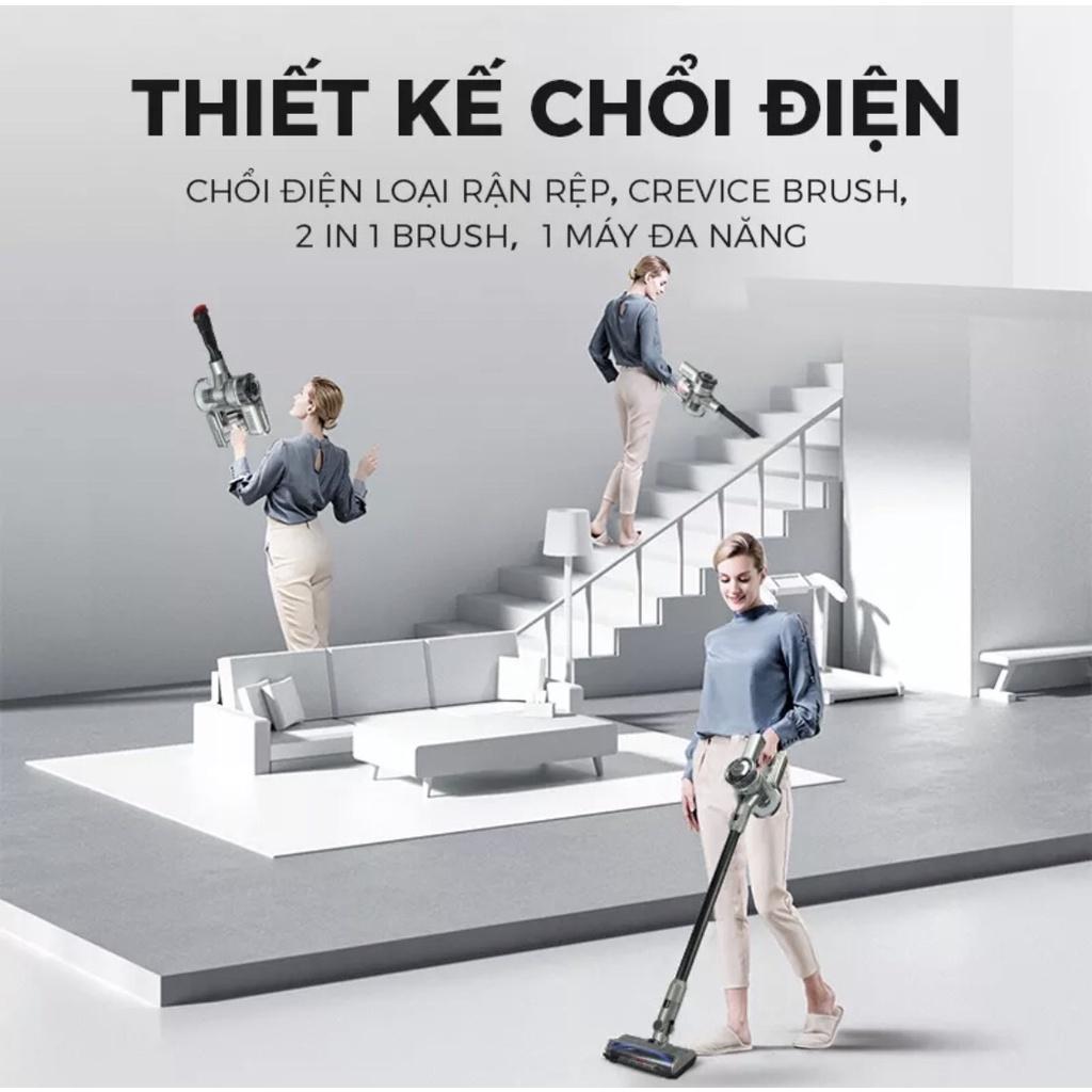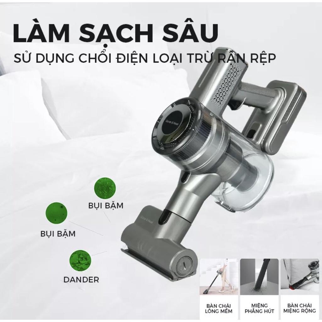 Máy hút bụi không dây thông minh Dreame V11 SE - sản phẩm được nhiều khách hàng chờ đón - vừa chính thức ra mắt tại thị trường Việt Nam. Là dòng giá rẻ sở hữu nhiều tính năng ưu việt, Dreame V11 SE chính là trợ thủ đắc lực cho việc dọn dẹp nhà cửa của gia đình bạn. Máy hút bụi không dây thông minh Dreame V11 SE được trang bị động cơ tốc độ cao lên đến 125.000 vòng/phút, với nhiều loại đầu hút cho khả năng dọn dẹp linh hoạt nhiều khu vực, từ hốc tường, gầm giường, các vị trí cao ngoài tầm với, sô pha, và cả các bộ phận bám nhiều bụi của thiết bị điện tử. Đặc biệt, Dreame V11 SE còn đi kèm chổi quét chữ V có khả năng hút hiệu quả các loại lông tóc rối mà ko sợ bị kẹt, vướng víu như những dòng sản phẩm khác. Sản phẩm được trang bị công nghệ chuỗi 7 bước giảm ồn, giúp việc dọn dẹp trở nên dễ chịu và êm ái hơn. Bên cạnh đó, Dreame V11 SE sở hữu lưới lọc 5 lớp kèm hệ thống lọc bụi 12 chóp lốc xoáy, được chứng minh có thể loại bỏ 99% bụi mịn và ký sinh trùng bám trên bề mặt, bảo vệ sức khỏe cả gia đình bạn. Ngoài ra, chiếc máy hút bụi không dây thông minh Dreame V11 SE còn có nhiều tính năng tiện lợi khác như: màn hình cảm ứng HD dễ theo dõi, thiết kế gài dễ tháo lắp, giá treo tường 2 trong 1, bấm nút đổ rác không cần tiếp xúc, bộ lọc và cuộn lăn có thể rửa và tái sử dụng nhanh chóng... Với những tính năng vượt trội trên kèm khả năng dọn dẹp liên tục lên đến 60 phút, có Dreame V11 SE sẽ hỗ trợ bạn dọn dẹp nhanh chóng cả những ngồi nhà lớn và những ngóc ngách mà tay thường khó với tới được.
