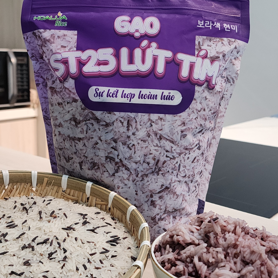 Gạo ST25 Lứt Tím chắc chắn không làm bạn thất vọng. Cơm nấu từ gạo này mềm dẻo, thơm ngon, mang hương vị đặc trưng của Gạo ST25 kết hợp với hương nhẹ nhàng và những dược chất tuyệt vời có trong gạo Lứt Tím cho cơ thể. Khi nấu chín, cơm có màu tím đẹp mắt, và khi để nguội vẫn giữ được độ mềm, không bị khô cứng .Không chỉ đẹp mắt,tỷ lệ kết hợp giữa Gạo ST25 và Gạo ST Lứt Tím trong mỗi túi Gạo ST25 Lứt Tím được điều chỉnh để đảm bảo cung cấp vừa đủ dưỡng chất cần thiết cho cơ thể có trong gạo lứt như rất nhiều chất xơ, giúp hệ tiêu hóa hoạt động tốt hơn, giảm nguy cơ mắc các bệnh về tim mạch. Đặc biệt, trong gạo lứt tím còn có chất chống oxy hóa giúp bảo vệ tế bào, tăng cường sức đề kháng.