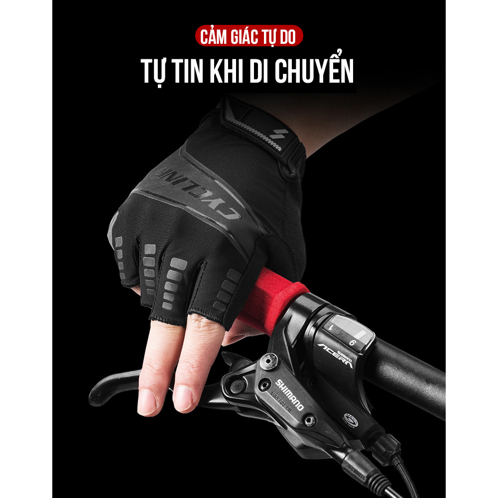 Găng tay xe đạp hở nửa ngón thoáng khí thấm hút mồ hôi chống trơn trượt Cycling #mtb