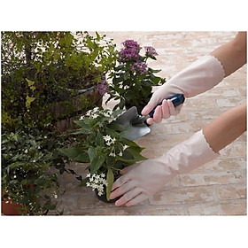 - Công dụng: Dùng để bảo vệ bàn tay khi hoạt động vệ sinh trong gia đình, nhà bếp, nhà vườn, hoặc khi phải tiếp xúc với hóa chất. Mặt trên găng tay có thiết kế trơn đẹp mắt cùng mặt tiếp xúc phía dưới có thiết kế gai nhỏ, dày giúp tăng ma sát, giúp bạn không bị trượt tay khi bê, cầm các đồ vật. Bên trong găng được xử lý chống dính tạo cảm giác thoải mái khi sử dụng.