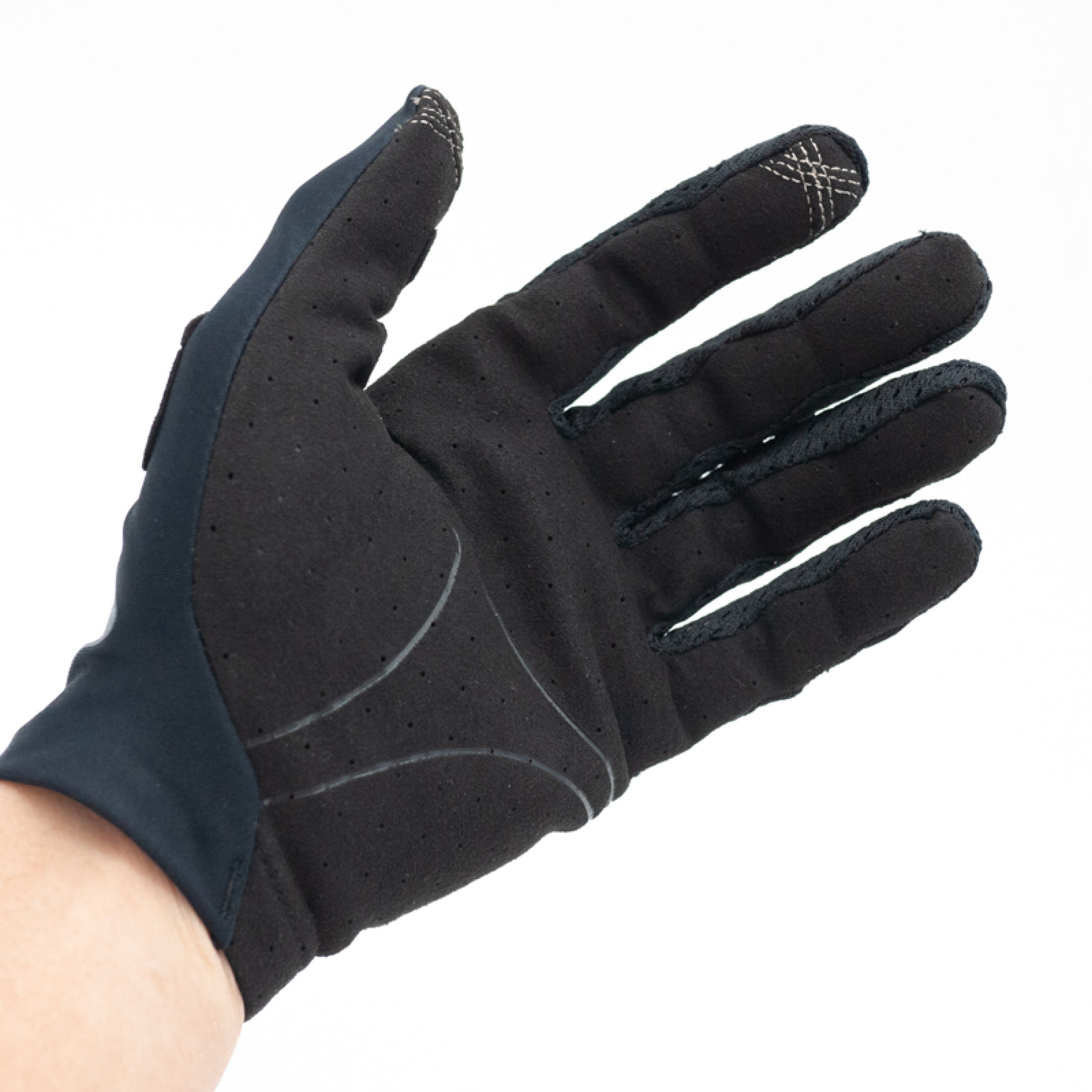 - Lòng bàn tay vật liệu micro fiber được đục lỗ tăng cường khả năng thoáng khí nhưng vẫn bền chắc.