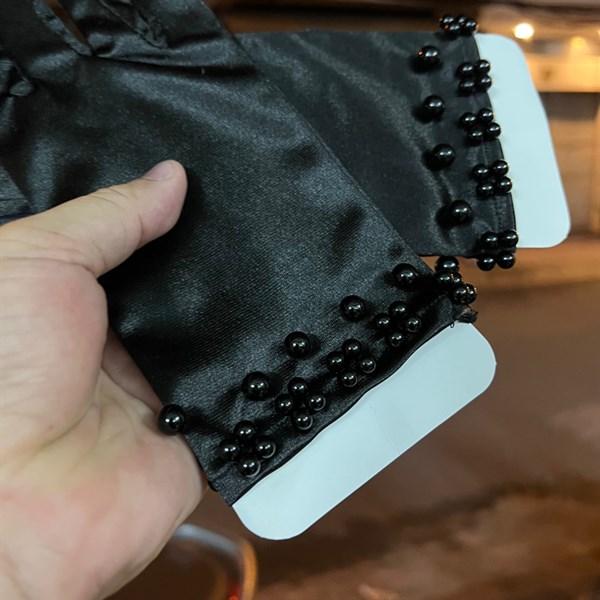 ✨Găng tay nữ đen ngắn phi bóng đính hạt trai đen Giangpkc