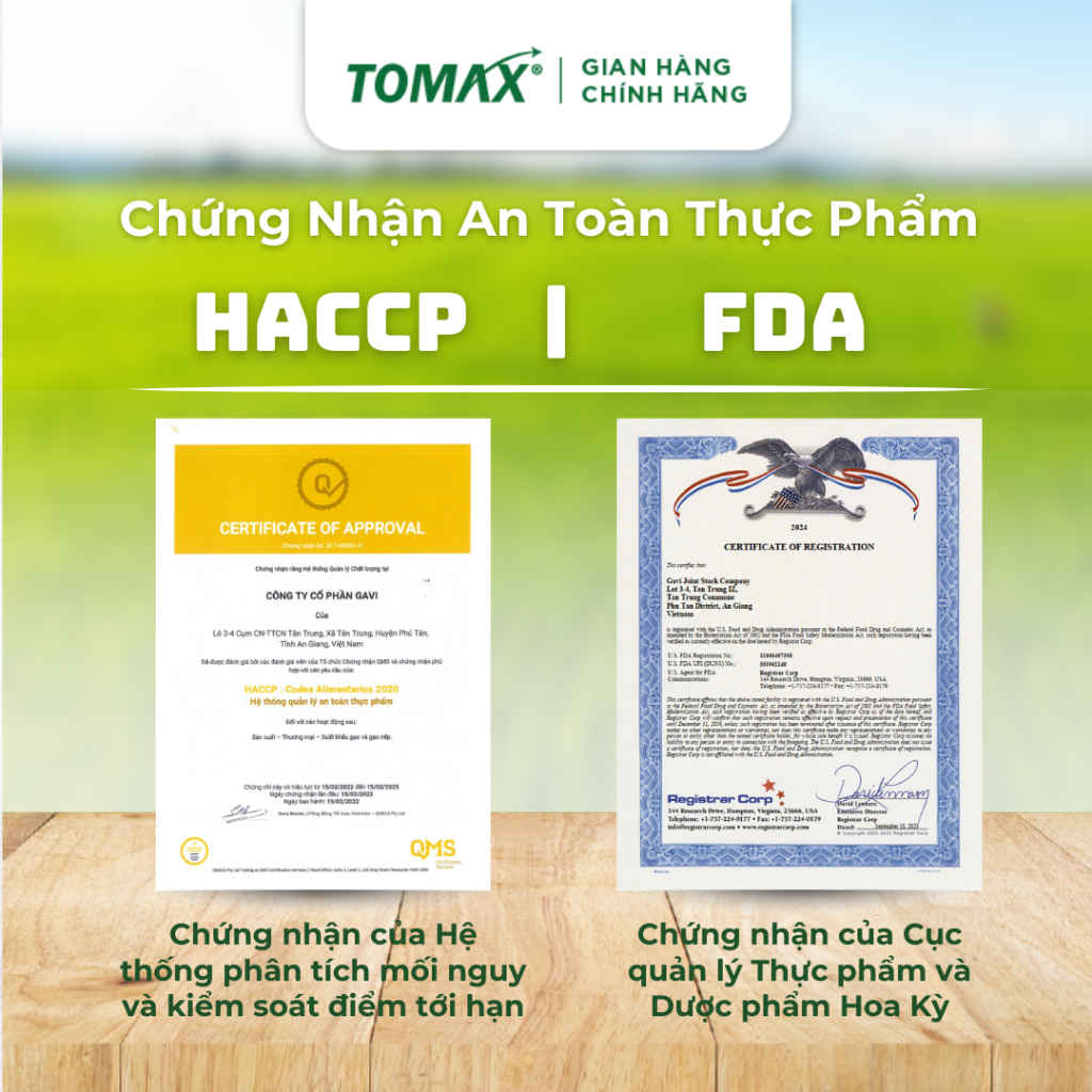 Gạo hữu cơ Đài Thơm Tomax 100% không có chất bảo quản, không có chất chống mọt, chống nấm, chất tẩy trắng an toàn tuyệt đối cho người sử dụng. Giá trị dinh dưỡng trong mỗi hạt gạo cao vì được phát triển tự nhiên như vitamin B1, B3, B6, sắt, kẽm, Omega 3… tăng cường sức khỏe cho cả gia đình mỗi ngày. Gửi gắm trong những sản phẩm tinh khiết và chất lượng, TOMAX Holding ước mong, mỗi bữa cơm sẽ là nơi gia đình gắn kết thân tình thêm bền chặt và những phút sum vầy luôn trọn vị yêu thương. 05 Lý Do Nên Chọn Gạo Sạch Hữu Cơ Đài Thơm Tomax: Cung cấp nguồn dinh dưỡng dồi dào cho cơ thể để duy trì sức khỏe tốt nhất. Tăng cường sức đề kháng, cải thiện hệ miễn dịch và phòng ngừa nhiều loại bệnh như tim mạch, huyết áp, đột quỵ,... Gạo được trồng theo phương pháp 100% hữu cơ nên an toàn cho mọi đối tượng, đặc biệt tốt cho người già, người sức khỏe kém, trẻ nhỏ,.. Gạo hữu cơ có chỉ số đường huyết thấp, giàu chất xơ hỗ trợ giảm cân, chống oxy hóa, bảo vệ sức khỏe toàn diện. Chất lượng sản phẩm được kiểm định kỹ lưỡng, date xa, giá tốt, giao hàng nhanh. THÔNG TIN SẢN PHẨM Thành phần: 100% Gạo trắng Đài thơm chất lượng cao, đóng gói theo tiêu chuẩn Châu u (HACCP) Thông tin dinh dưỡng (trong 100g gạo):