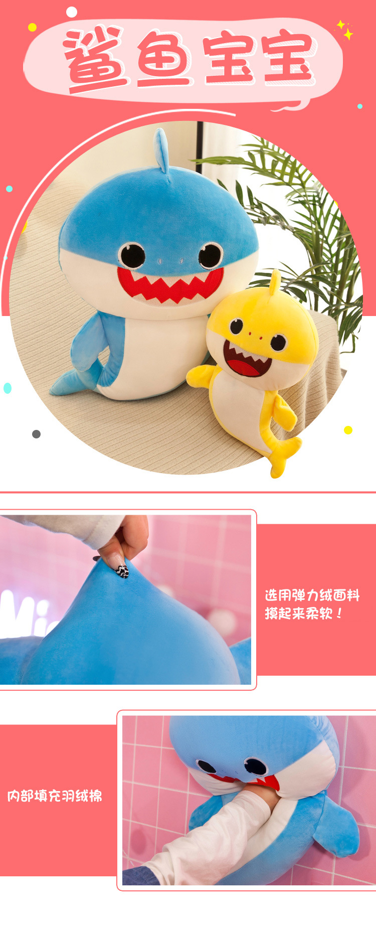 Gấu Bông BabyShark được nhồi gòn 100%, chất vải nhung cao cấp mền mịn và an toàn với mọi loại da, kể cả da em bé.