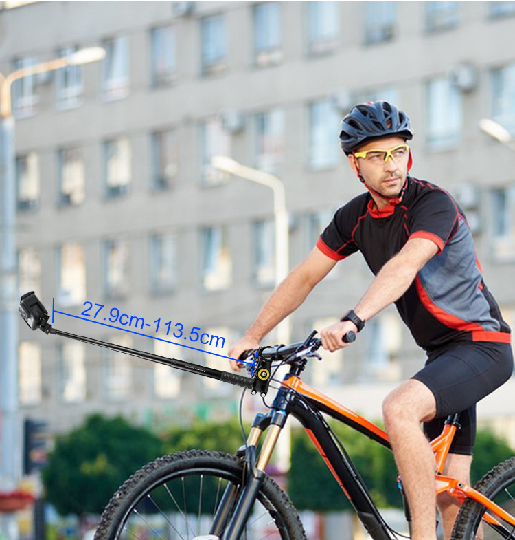 - Điều chỉnh thuận tiện: giá ôm cho xe đạp có thể được xoay và điều chỉnh bằng cách xoay lỗ vít, và góc có thể điều chỉnh 120 °. - Đi kèm với kẹp bệ cần điều khiển, bạn có thể cài đặt gậy selfie vào tay lái xe đạp, xe máy hoặc xe đẩy, xe nôi trẻ em trong đường kính 32mm một cách dễ dàng.