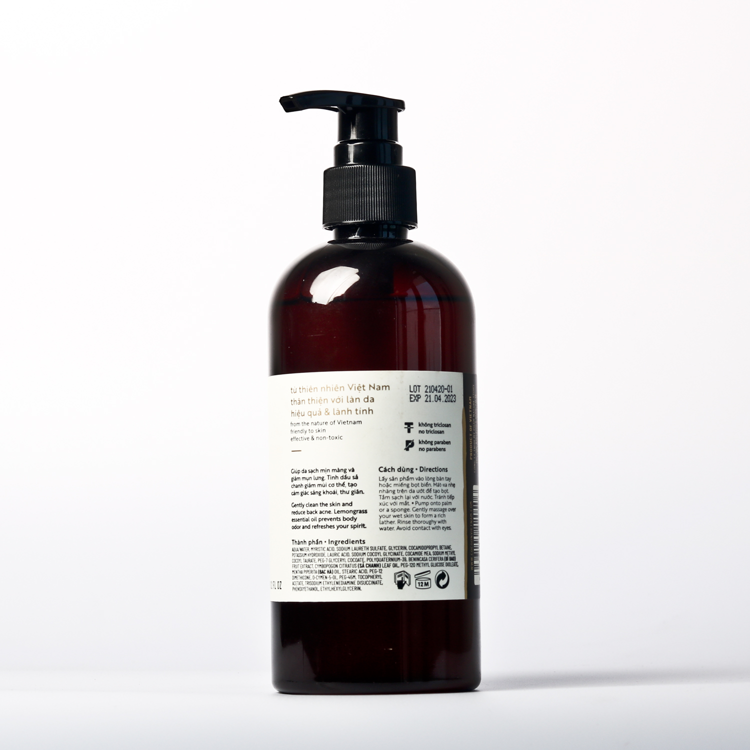 Làm sạch da cơ thể là vấn đề vệ sinh thiết yết mỗi ngày của chúng ta, nhưng sạch thôi chưa đủ, sản phẩm các vấn đề về da cơ thể mới thật sự cần thiết. Cơ thể sạch sẽ thơm tho và sạch mụn vùng lưng với gel tắm bí đao và tinh dầu sả thiên nhiên giúp làm sạch mụn lưng, khử mùi hôi cơ thể. Thành phần chính