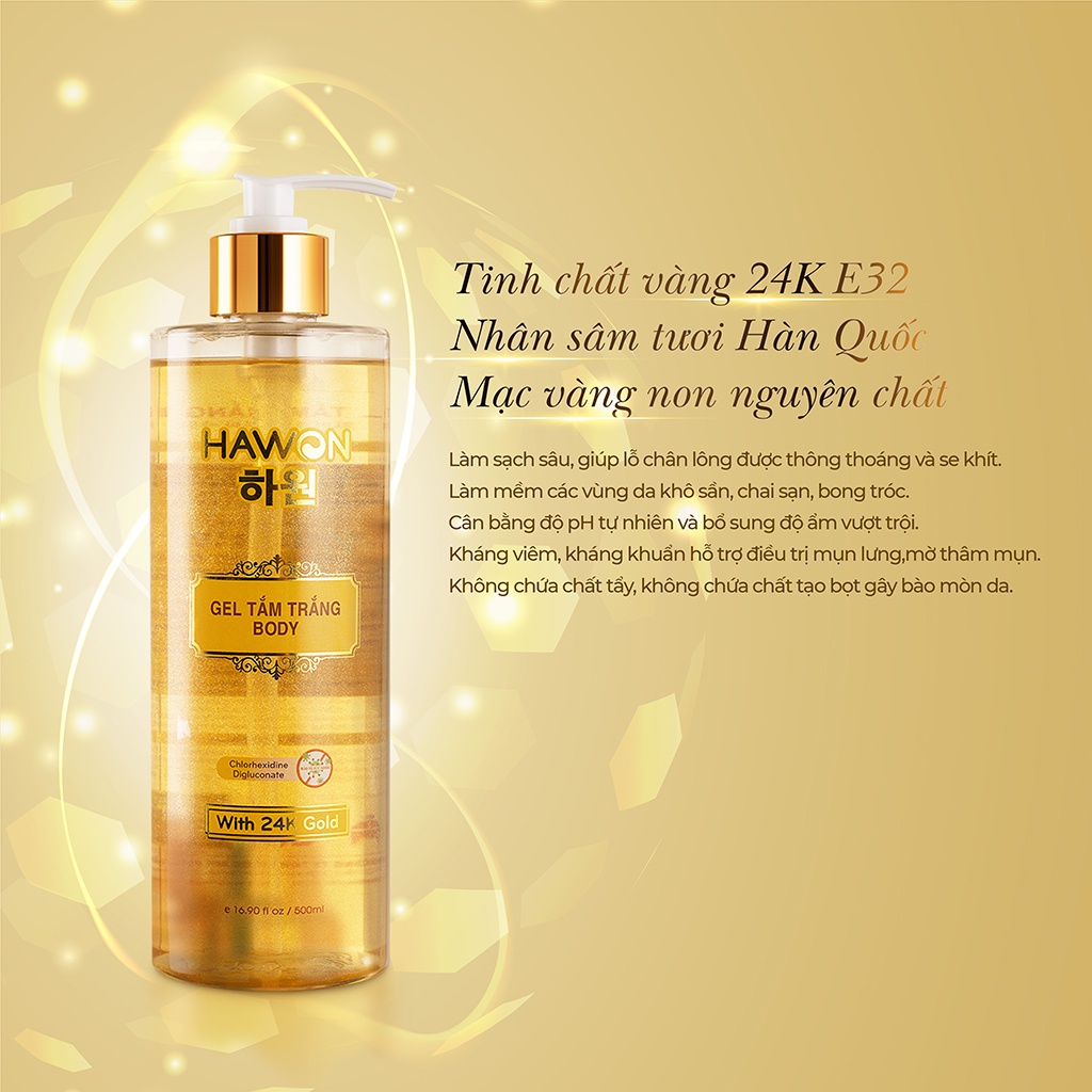 ✨Gel Tắm Trắng Sáng Mịn Da Chiết Xuất Tinh Chất Vàn.g 24K HAWON - 500ml