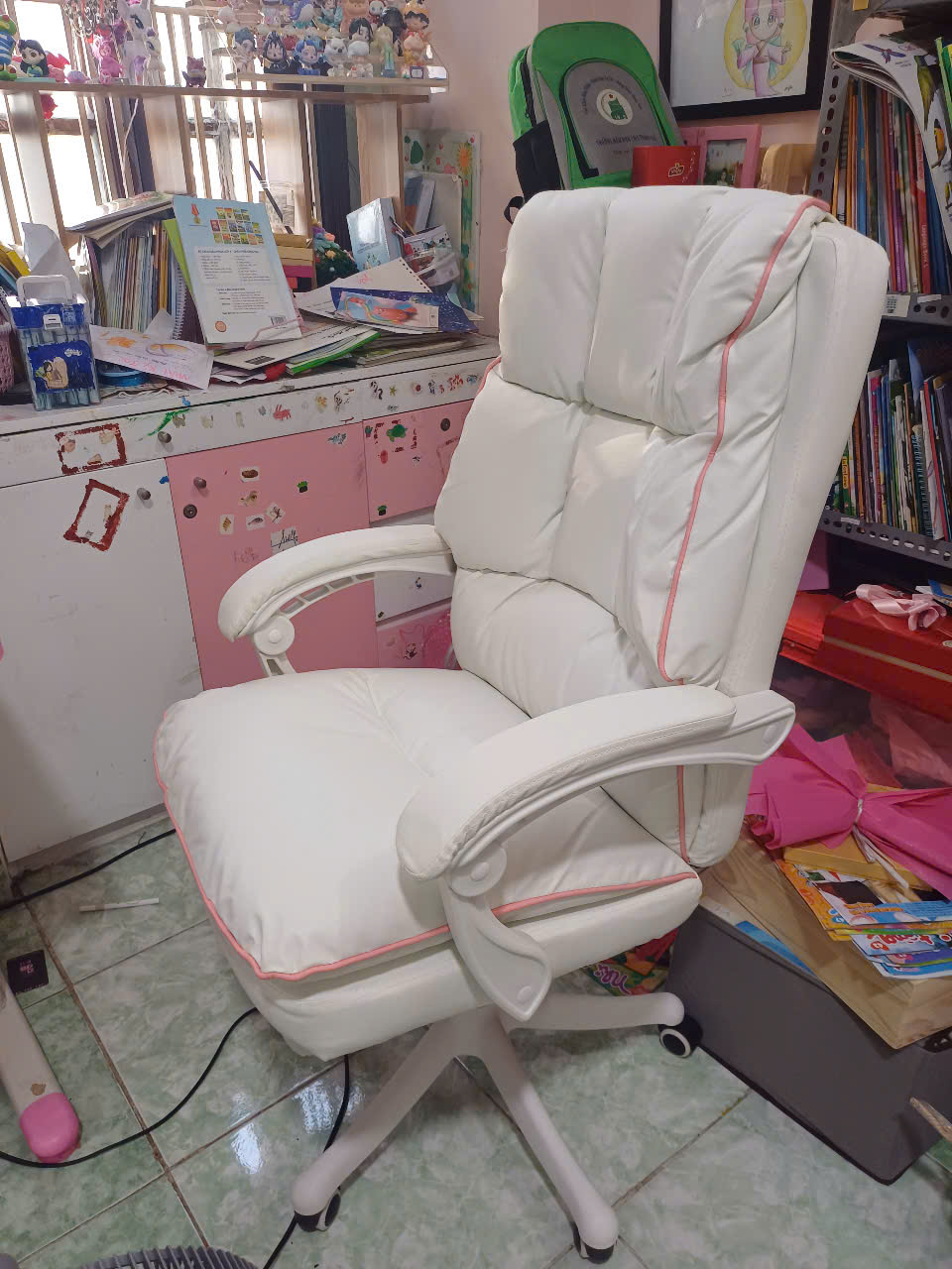 Ghế xoay làm việc CR4104-P có kích thước lớn, ôm trọn cơ thể người ngồi, phù hợp với đa dạng dáng người. Thiết kế viền hồng nổi bật trên nền nệm ghế màu trắng, giúp không gian học tập làm việc trở nên khác biệt cá tính.