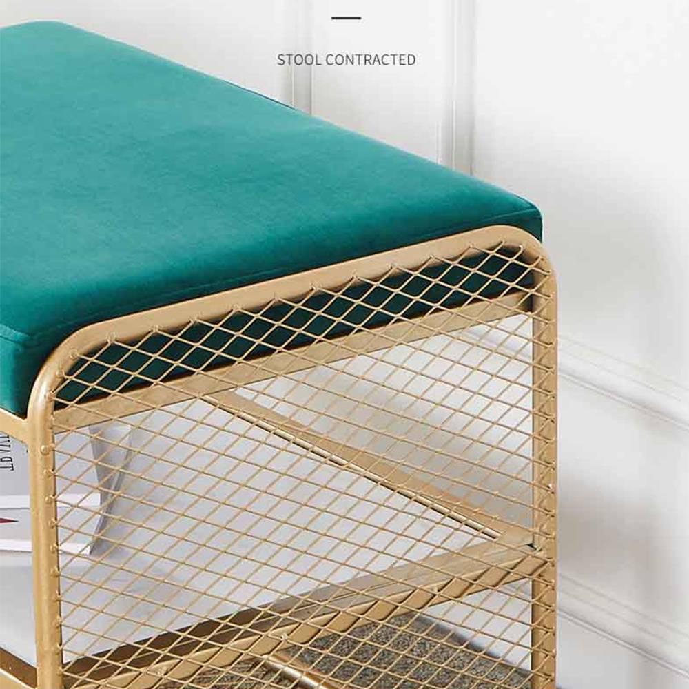 Ghế giày AK008 được làm từ chất liệu chính là sắt ống dày 1.2 ly sơn tĩnh điện cao cấp, màu sắc đa dạng. Nệm ghế được làm từ mouse bọc vải nhung êm ái, sang trọng. Chiều sâu và chiều cao ghế lần lượt là 35cm và 45cm, tùy chọn chiều ngang từ 60-120cm hoặc có thể thay đổi theo yêu cầu.