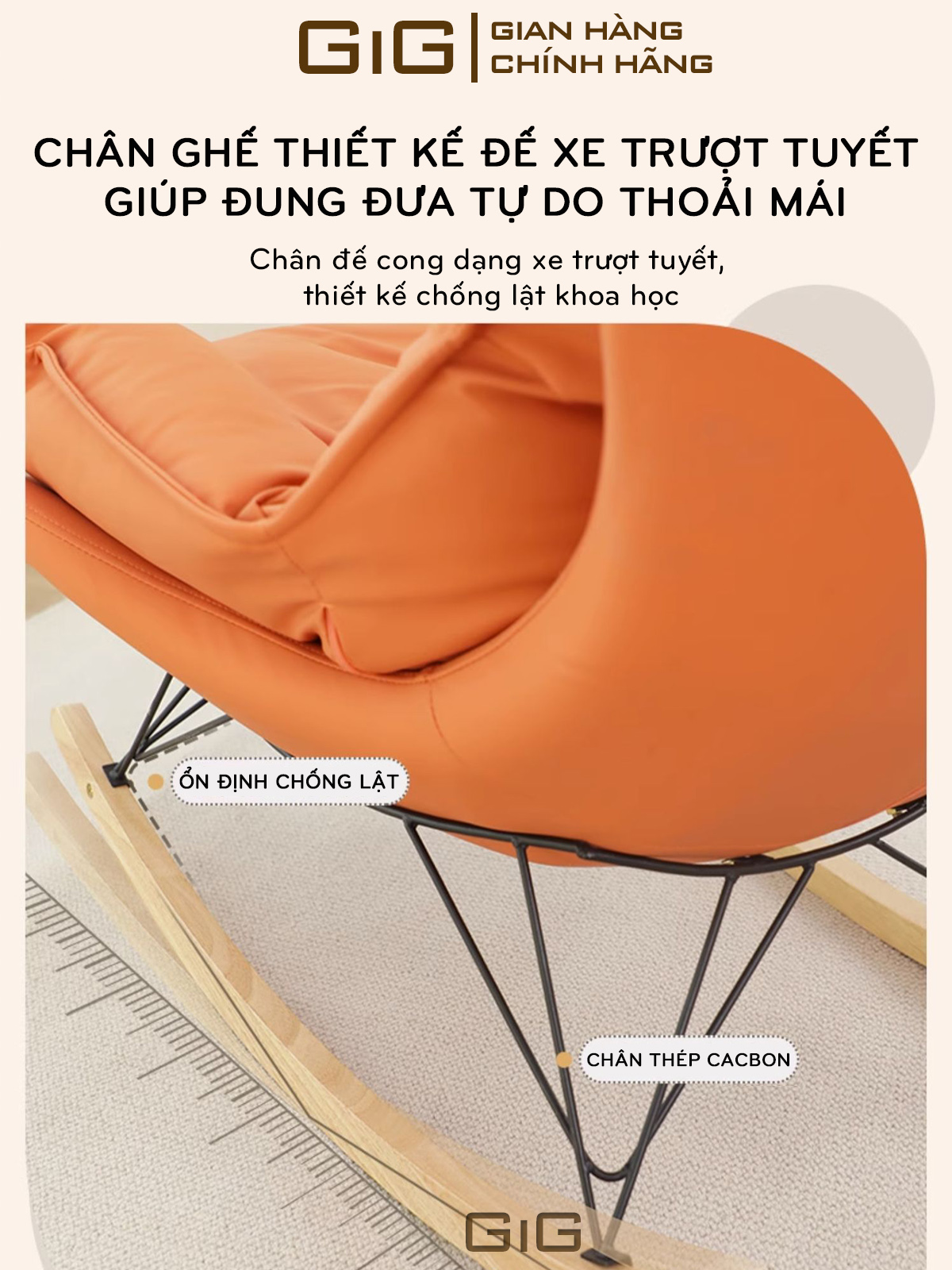 ️ Thiết Kế Bập Bênh Tinh Tế: Ghế được chế tạo với phần khung chắc chắn và khoa học, có thể tiến về trước 30 độ và ngả phía sau 15 độ, giúp chuyển động bập bênh mượt mà và êm dịu, mang lại trải nghiệm thoải mái mỗi khi ngồi.