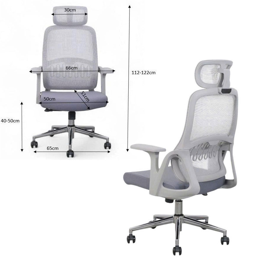 Mô tả sản phẩm: - Khung ghế: Nhựa PP cao cấp màu xám, chịu lực tốt. - Chất liệu: Lưới thoáng khí, co giãn, màu xám vân sọc sang trọng. - Tay ghế: 9D đa