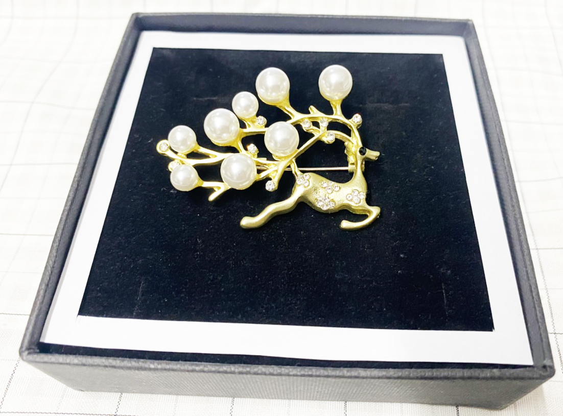 Trâm Cài Áo Nữ Quà Tặng Hươu Vàng Đính Đá Ngọc Trai Trang Nhã Sang Trọng (Kèm Hộp) Kích thước: 5x4cm Chất liệu: hợp kim không gây dị ứng, an toàn cho làn da của